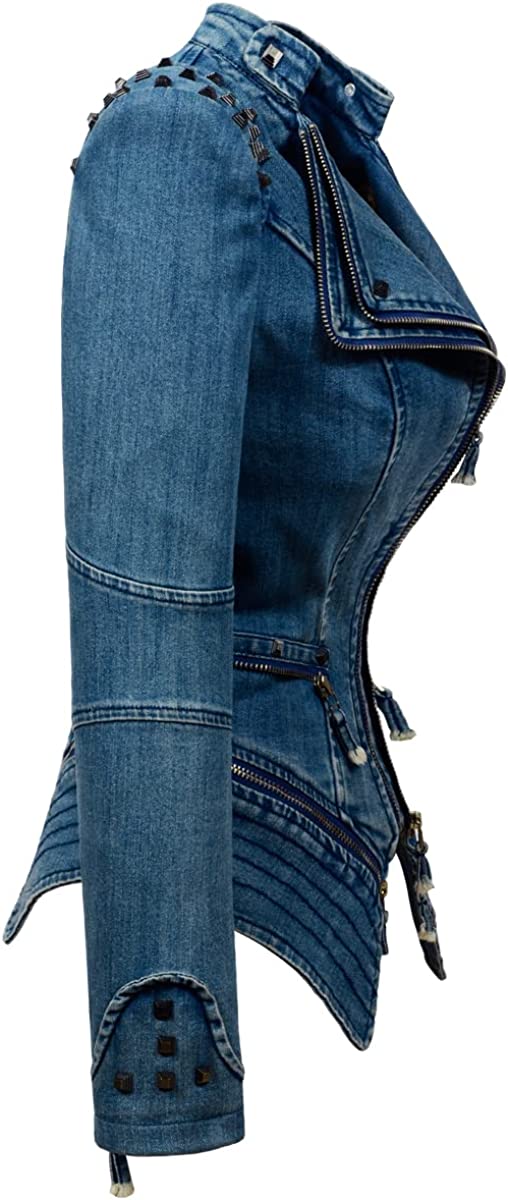 Fashion SX Womens Rivet Faux Leather Jacket Zipper Moto Biker Denim coat Motorcycle Outwear