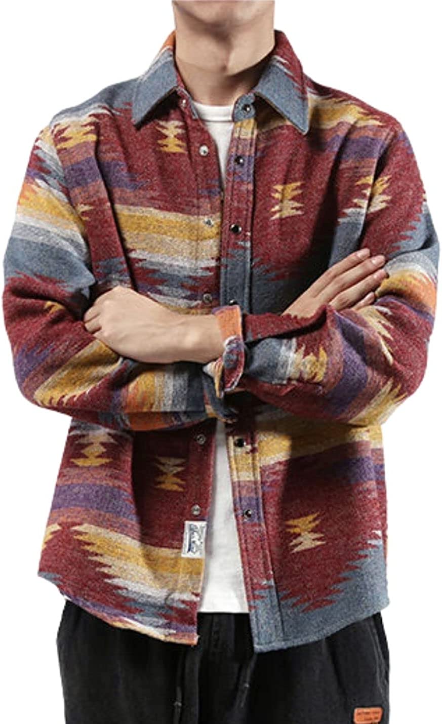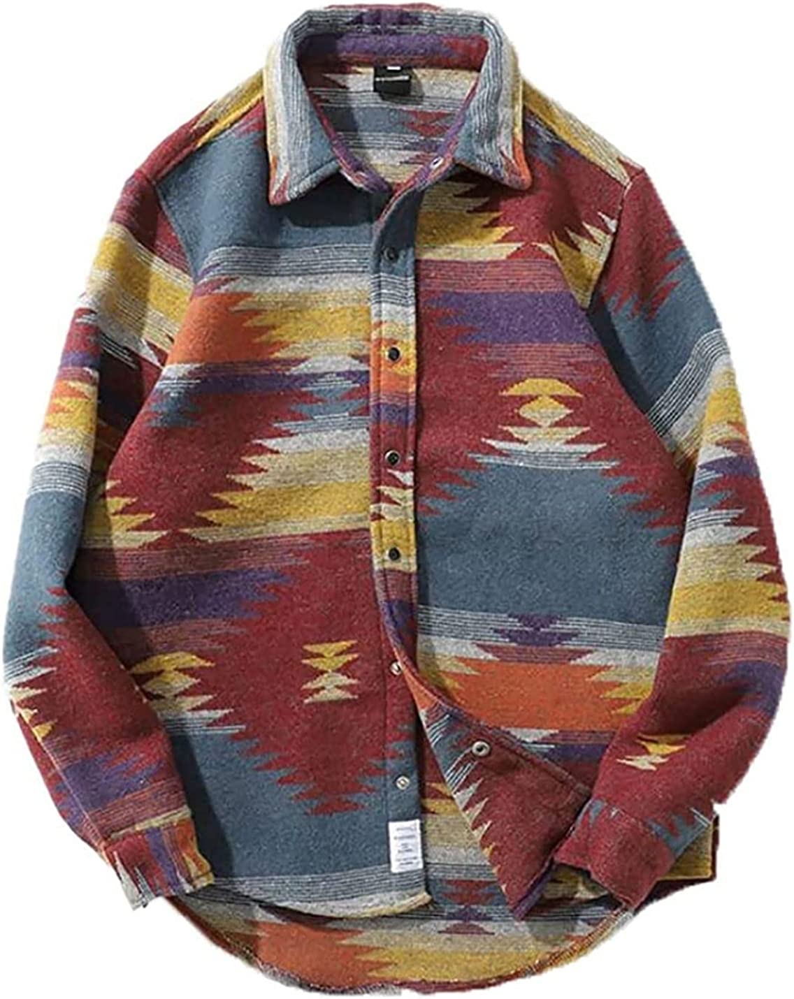 FindThy Men’s Brushed Flannel Shirts Ethnic Aztec Print Button Up Lapel Tribal Shirt Jacket Shacket