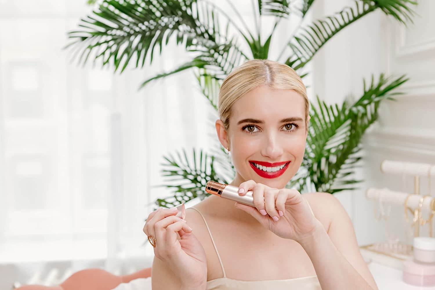 Finishing Touch Flawless Women's Painless Hair Remover. Remove Flawless cap, slide the switch located on the side of the unit upward into the "ON" position. The light will automatically turn on when the unit is "ON". Gently press the head of the unit flat against your skin. The unit should not be on an angle. Precede making small circular motions to remove unwanted hair. Note: It is normal for the head to become warm with use. The secret is a revolutionary Butterfly Technology that erases hair by microscopically paring it down through a spinning head. Neatly and discreetly housed under the 18 karat gold-plated head, the Butterfly Technology never touches delicate facial skin. For superior results, use on hair 1/4 inches in length or less.