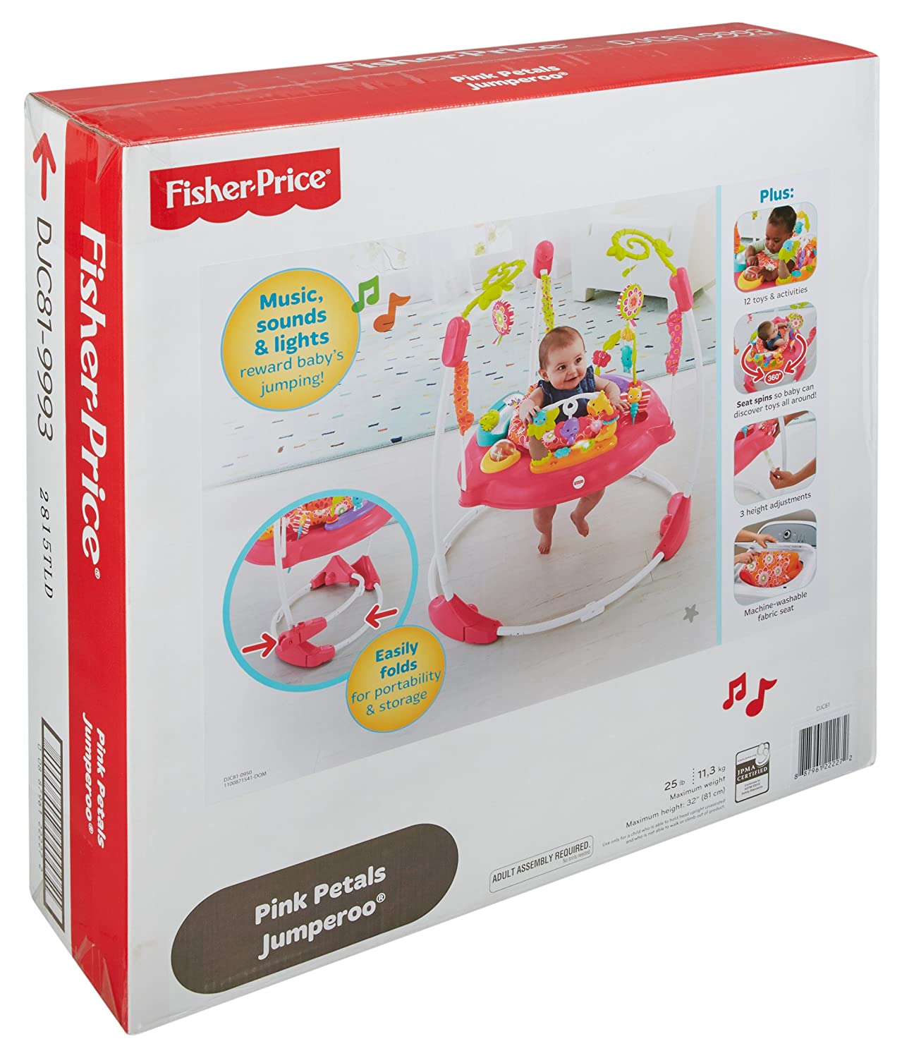 Bounce to the moon and back, all in a day’s worth of playtime. There’s so much for baby to discover with sweet animal friends on this Jumperoo – music, lights and exciting sounds reward baby with every jump! A rotating seat gives baby 360° access to toys, activities and friends all around, including soft flowers overhead, spinners, clickers, a bead bar, mirror and so much more, all within baby’s reach. Baby can reach, grasp, move, groove, and jump so high – all things that give developing motor skills a helpful boost. And it’s easy-peasy to fold for storage and portability.