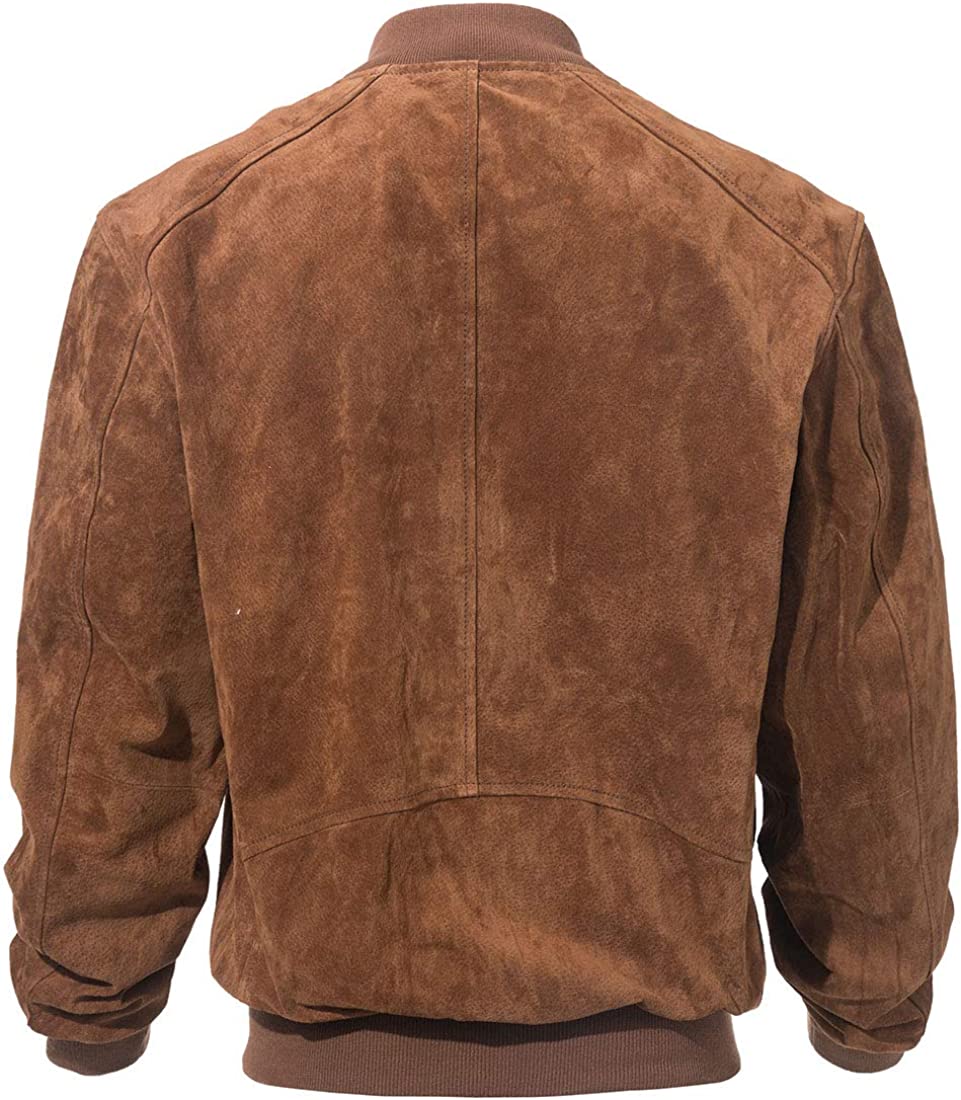 FLAVOR Men's Leather Baseball Bomber Jacket Vintage Suede Pigskin