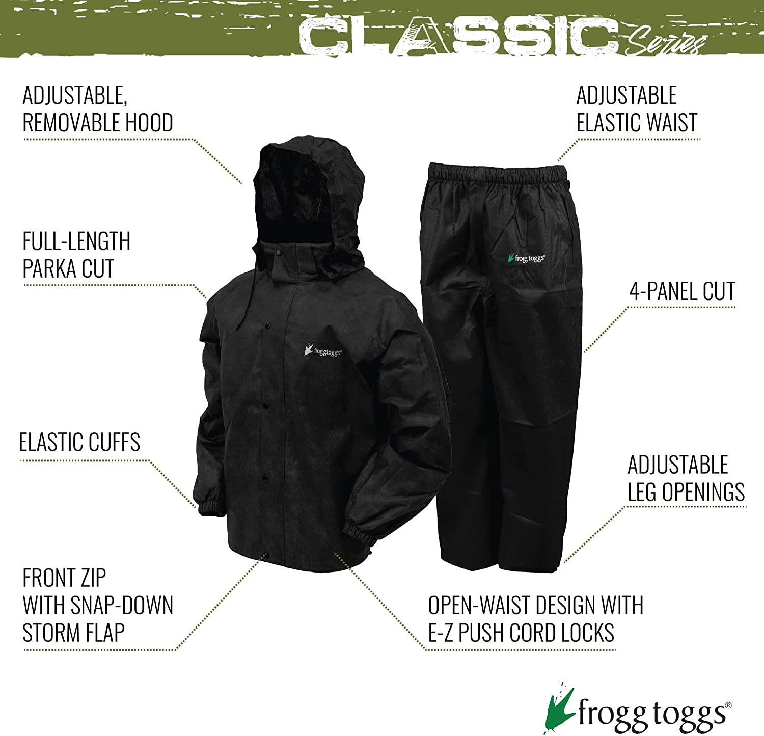 The All Sport Rain Suit is a blend of classic Frogg Toggs nonwoven materials that provides great waterproof and breathable performance at a terrific value. The Classic non woven jacket and pants are waterproof and great fitting. The All Sports Suit provides great-looking outerwear for every outdoor activity.
