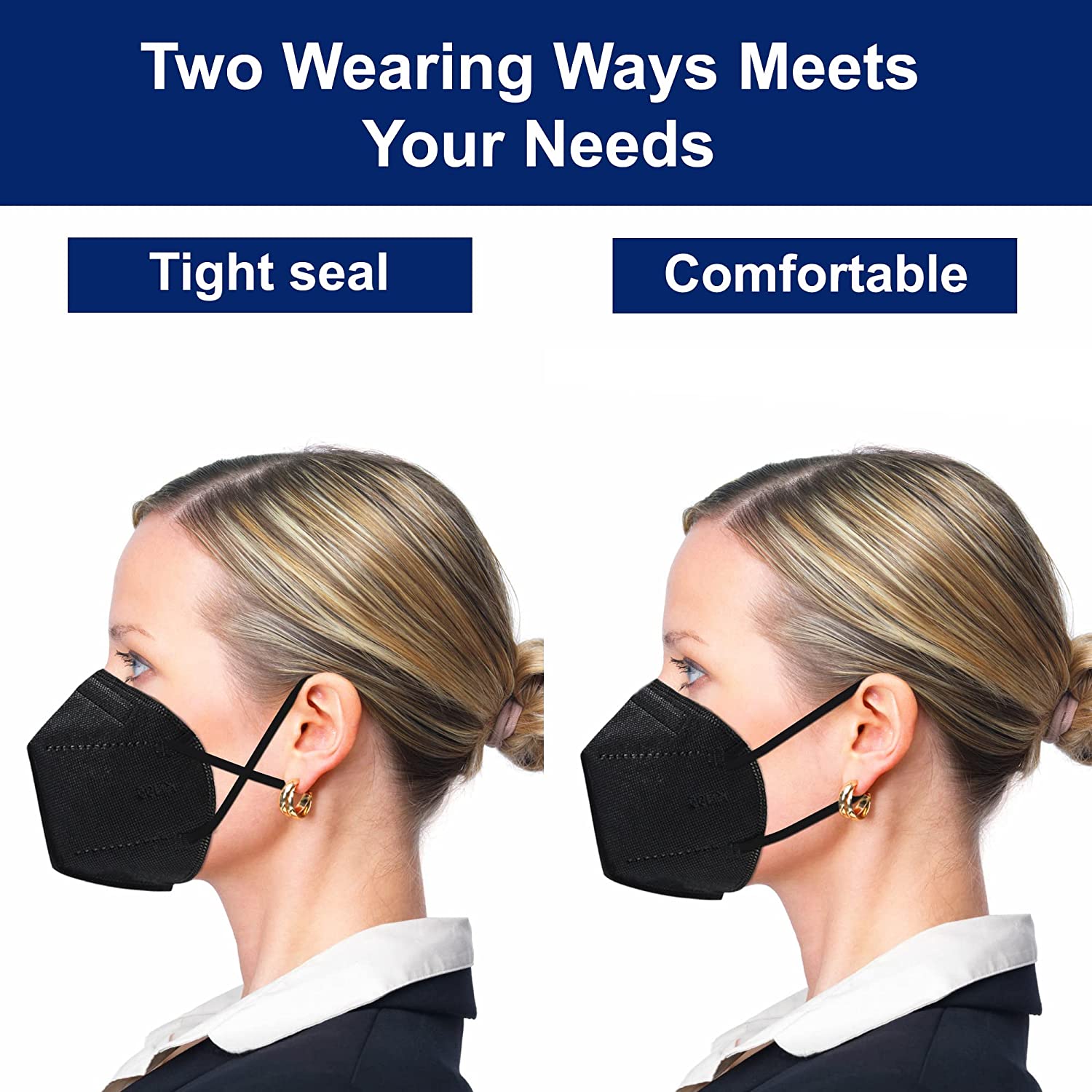 Funight KN95 Face Masks 25 Pack 5-Ply Breathable Filter Disposable Face Masks Black