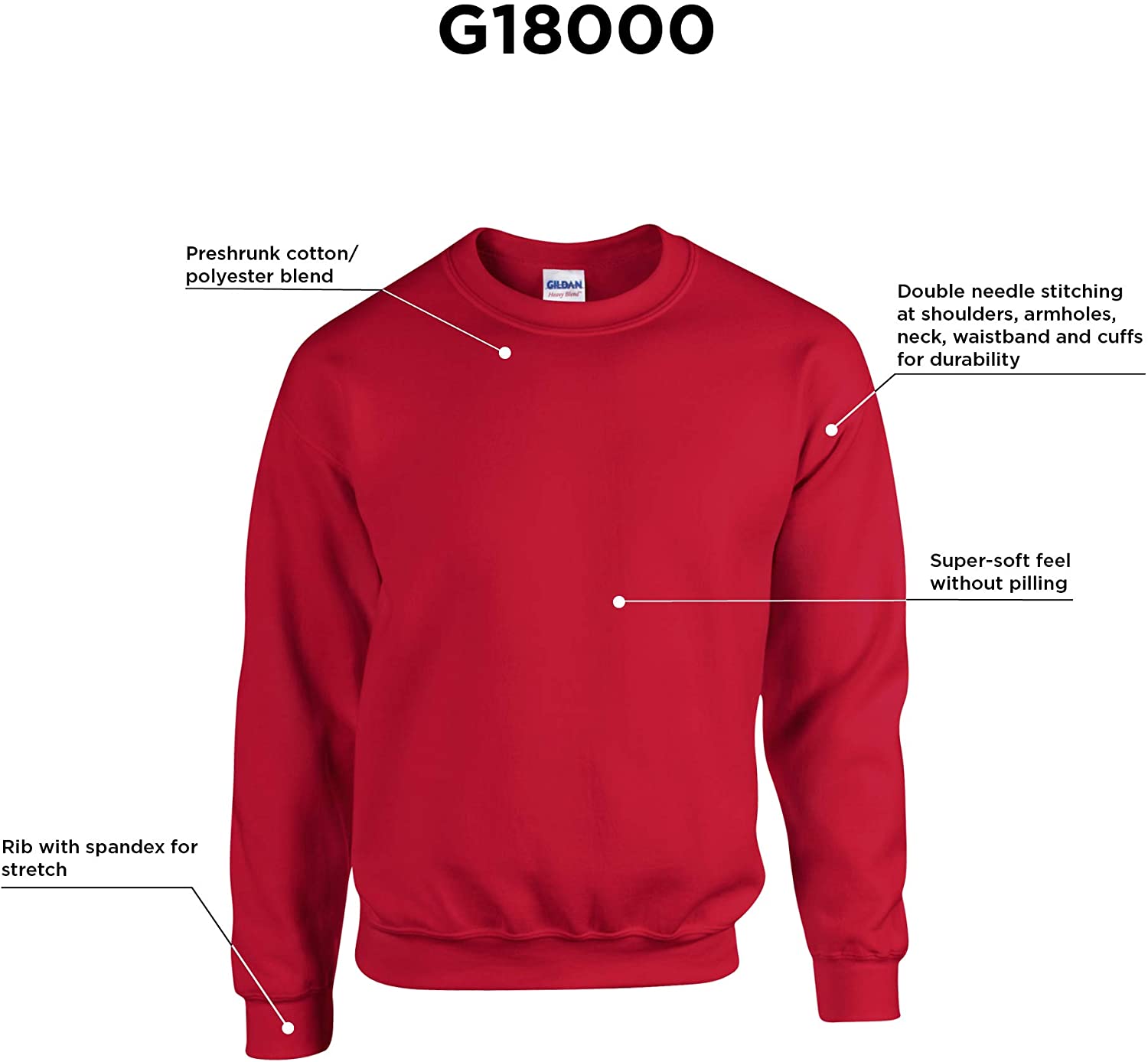 When soft comfort is what you seek, the Gildan Adult Fleece Crewneck Sweatshirt is what you need. Made from a 50% U.S. Cotton/50% Polyester blend, this warm 8.0 oz sq/yd classic fit style looks great and makes a great canvas for decorating. Available in 18 colors in SM - 3XL.