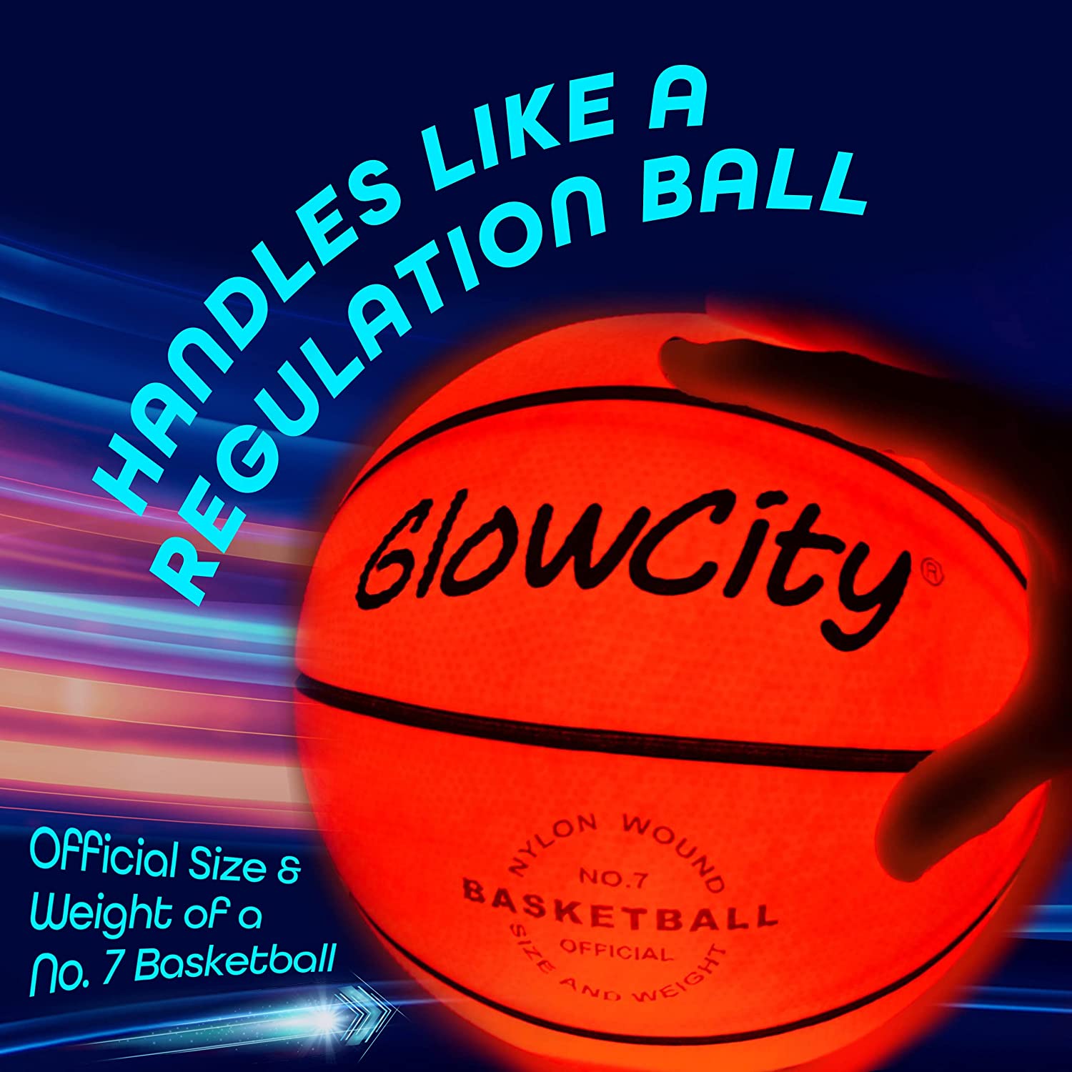 GlowCity Glow in The Dark Basketball - Light Up, Indoor or Outdoor Basketballs with 2 LED Lights and Pre-Installed Batteries