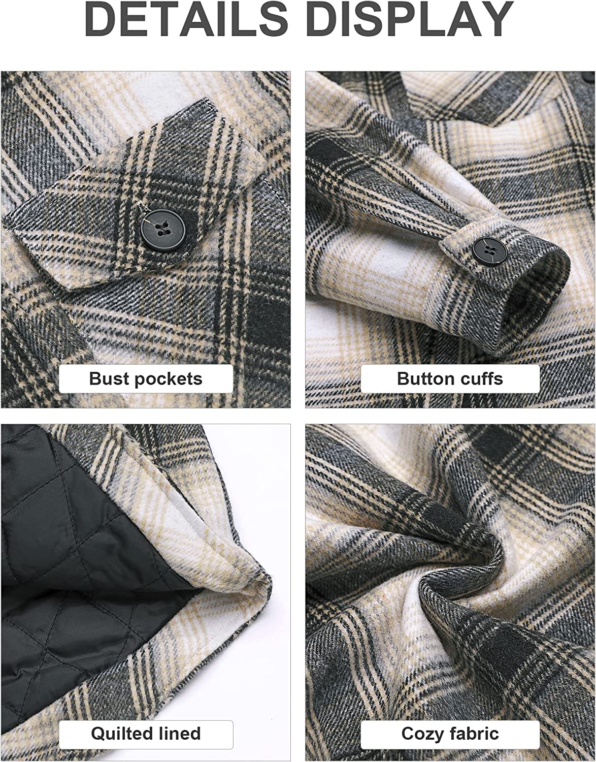 GRAPENT Women's Oversized Plaid Button Down Shirt Quilted Lined Shacket Jacket