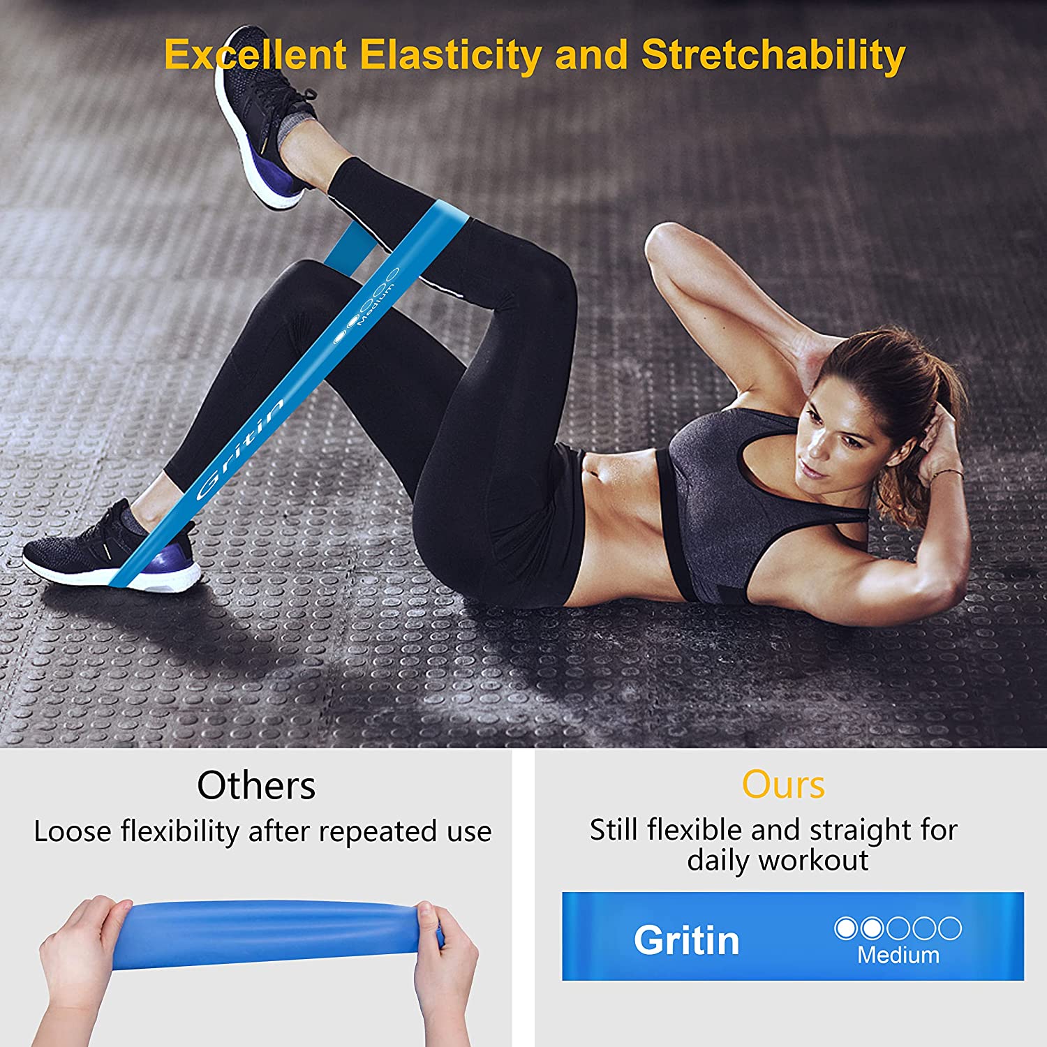 Gritin Resistance Bands, [Set of 5] Skin-Friendly Resistance Fitness Exercise Loop Bands with 5 Different Resistance Levels - Carrying Case Included - Ideal for Home, Gym, Yoga, Training