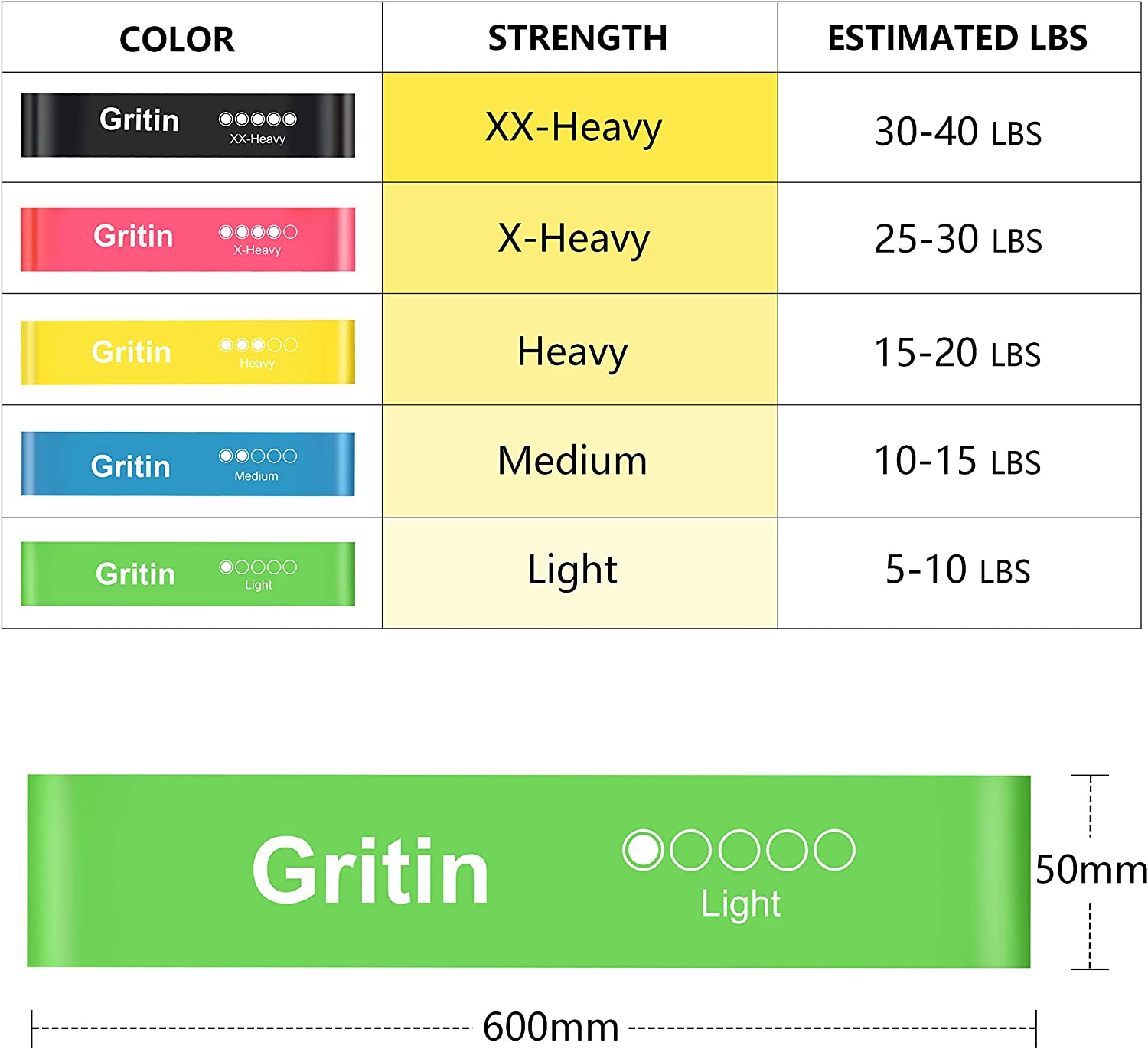 Gritin Resistance Bands, [Set of 5] Skin-Friendly Resistance Fitness Exercise Loop Bands with 5 Different Resistance Levels - Carrying Case Included - Ideal for Home, Gym, Yoga, Training