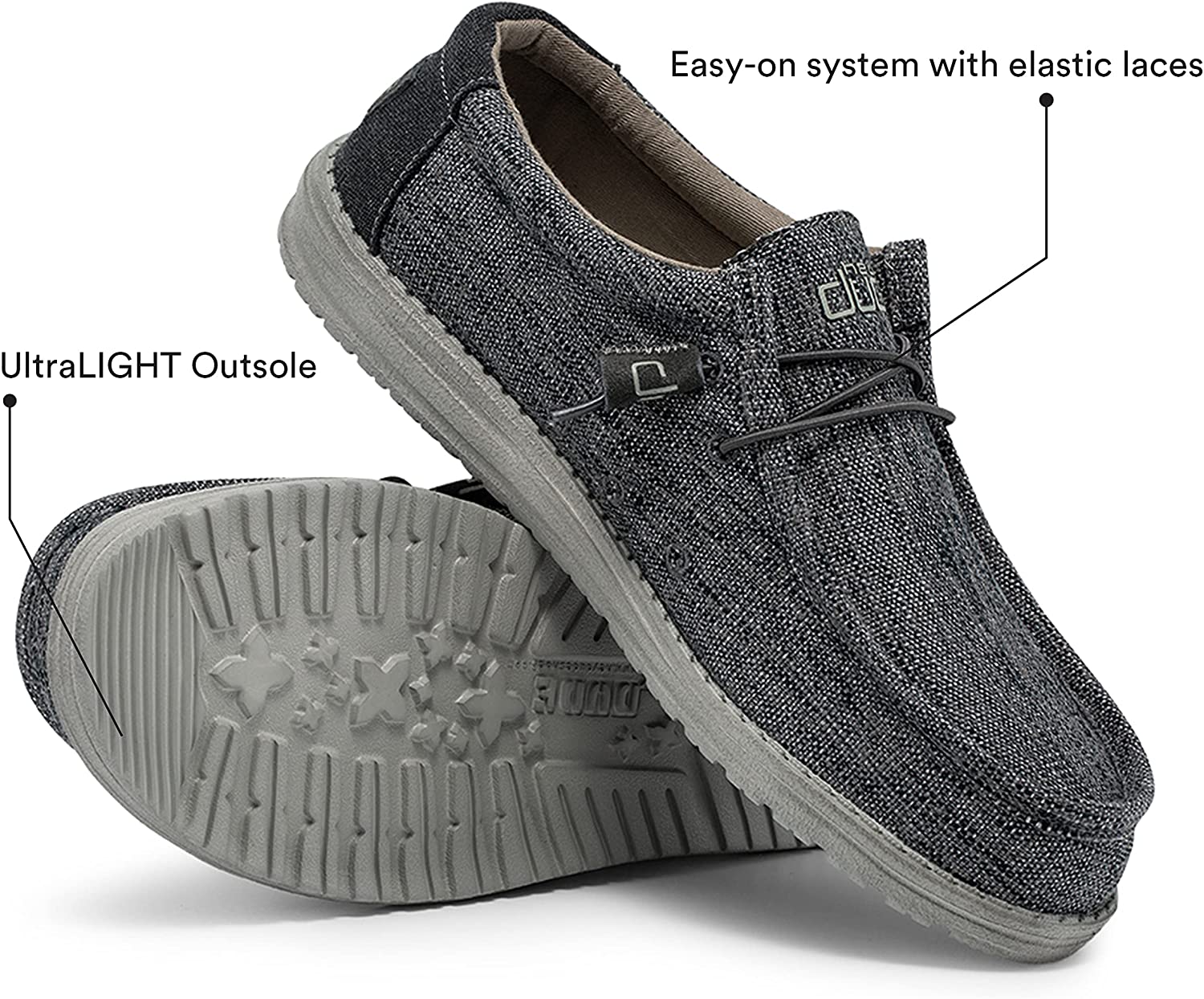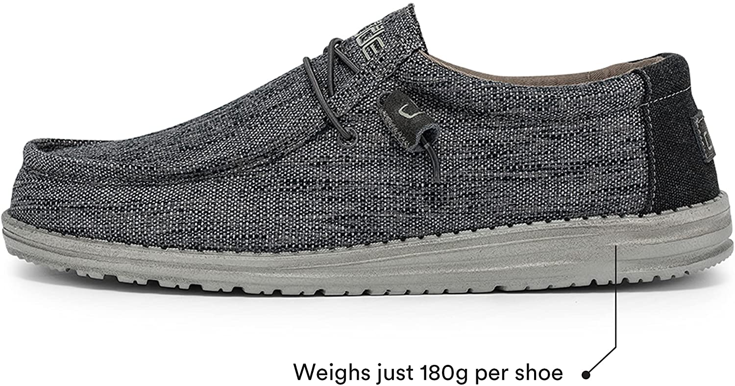 THE Walsh Not your dads deck shoe. The Walsh has a contrast lining and bright suede details take it a step beyond classic. In breathable stonewashed cotton canvas for a lived-in look. Elastic lacing means it slips right on - Stonewashed 8-ounce cotton upper with colorful contrasting suede details - Easy-On System with elastic laces - Wide fit - UltraLIGHT outsole - Ergonomic, leather-lined, removable memory-foam insole - Machine washable (cold) - Weight 175 gr. SOFT STONE-WASHED CANVAS - Using a special stone washing treatment, the cotton canvas becomes softer with slight variations in color and reveals individual characteristics for an exclusive worn appearance. OUR SHOES ARE: COMFORTABLE Our brand began its journey to create the most comfortable shoe possible. This principle guides our decisions - from the materials we use to the design of the shoe. ULTRA-LIGHT Part of making a comfortable shoe is making it lightweight, you could agree its the most important part. Our shoes weigh on average just 155 grams. FLEXIBLE All the benefits of a shoe, with the feel of a slipper. Our Primo Ultralight EVA molded sole integrated with a perforated memory foam insole offers the ultimate in cushioning, comfort, and breathability for your feet! EASY ON All Heydude shoes incorporate our Easy-On System, giving you speedy access without sacrificing support or comfort. TRAVEL READY The combination of the previously listed qualities means that our shoes are ideal for traveling for long or short periods.