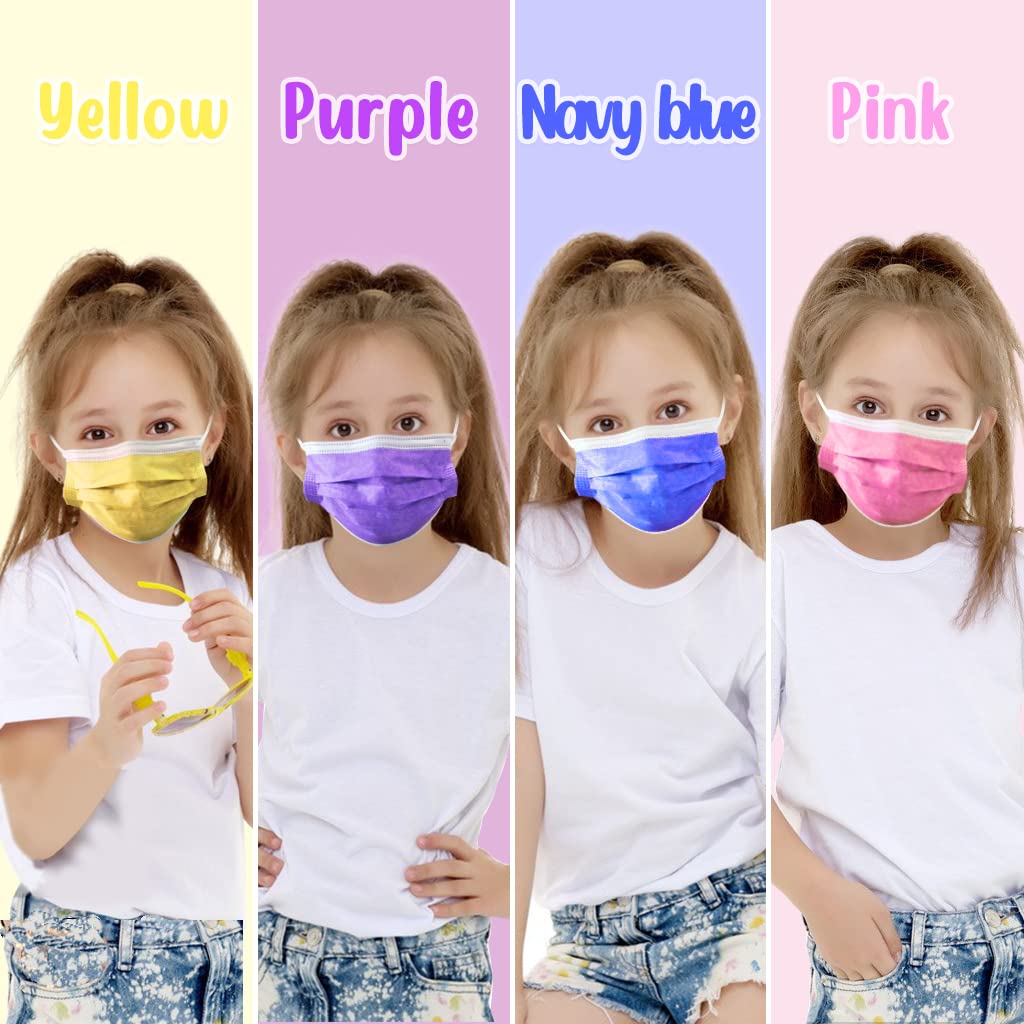 HIWUP 100Pcs Ten Colors Kids Disposable Face Masks for Childrens Face Mask Ages 4-12
