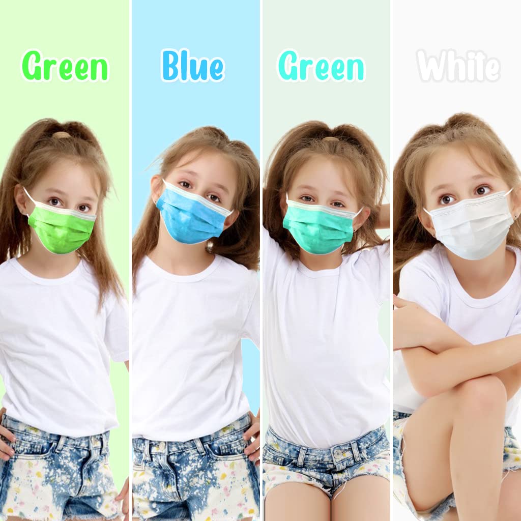 HIWUP 100Pcs Ten Colors Kids Disposable Face Masks for Childrens Face Mask Ages 4-12