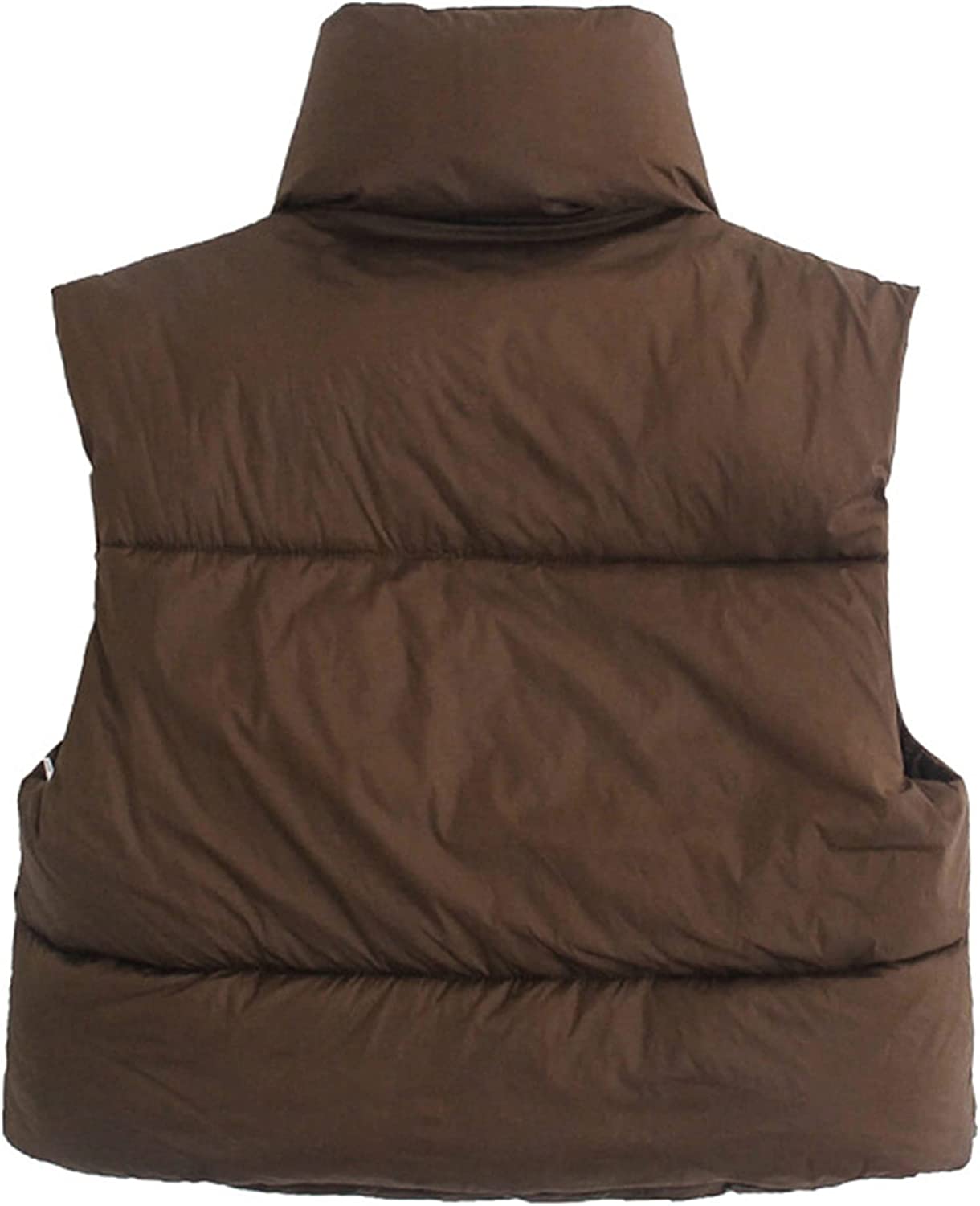 Hixiaohe Women's Winter Crop Vest Puffer Lightweight Stand Collar Padded Vest Zip Up Sleeveless Jacket