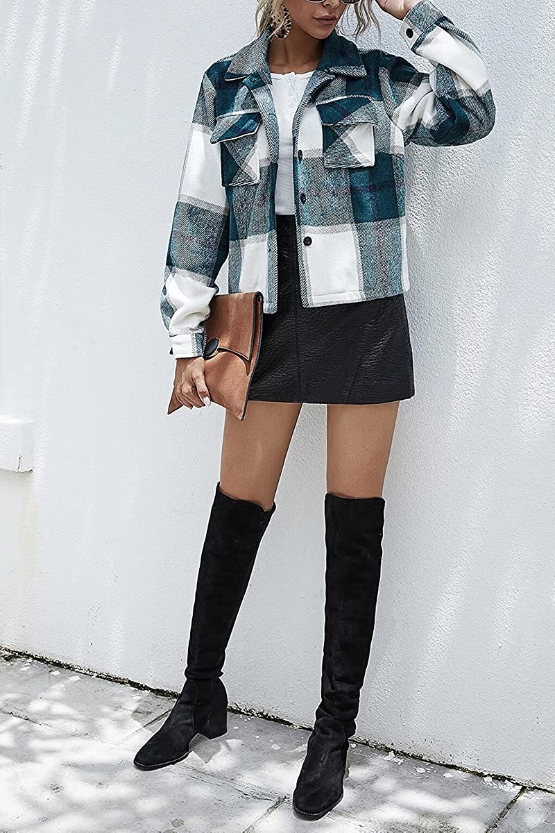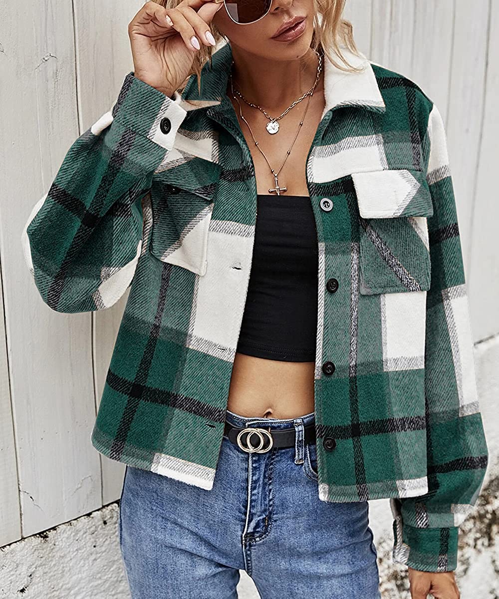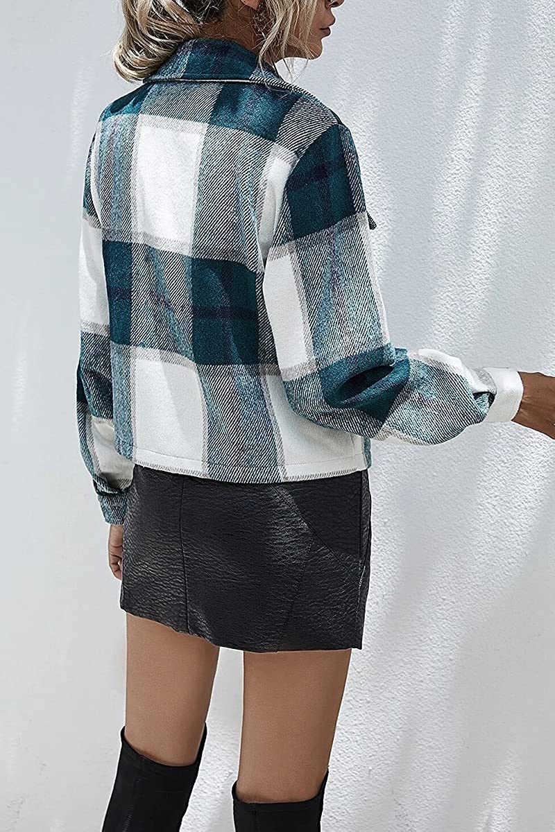 Hongqizo Women Long Sleeve Button Front Plaid Jackets Flannel Wool Blend Casual Plaid Shirts Coat Shackets