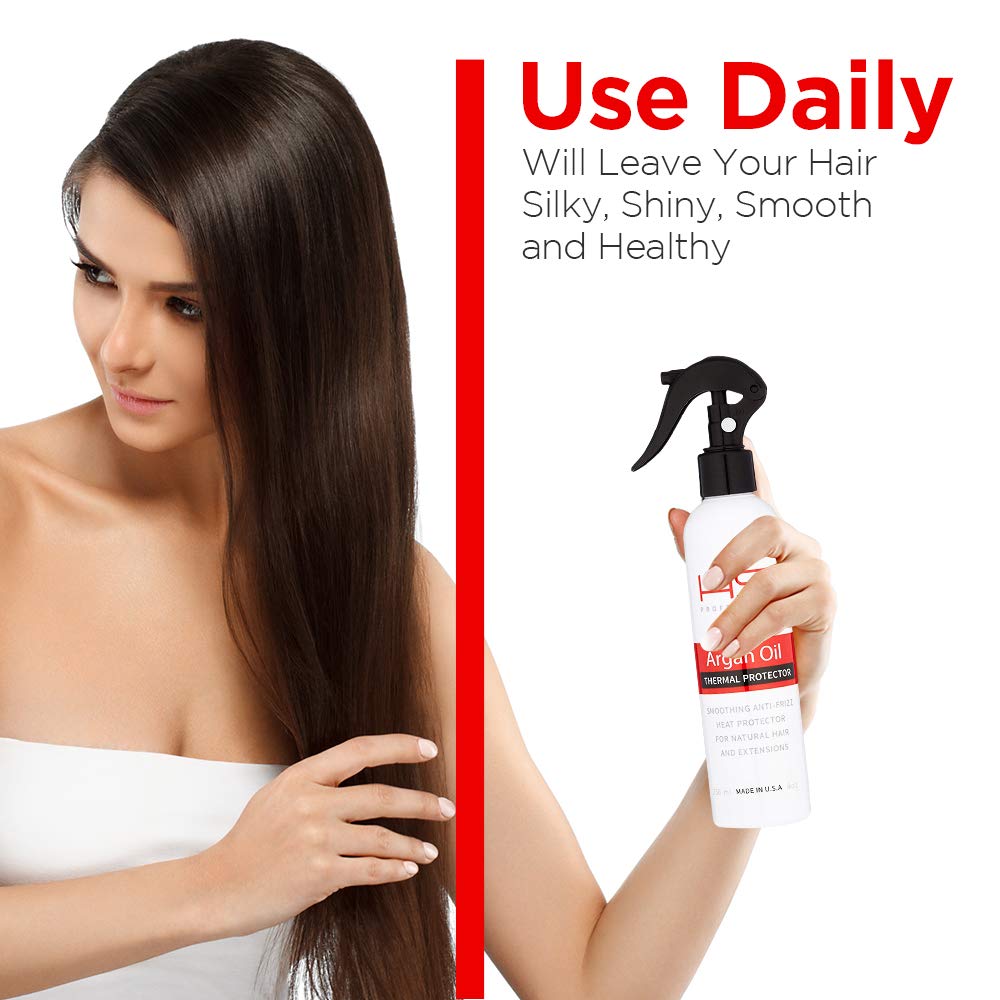 Get the vibrant, silky, shiny and healthy styles you've always wanted without damaging your hair. HSI’s argan oil hair heat protectant is a weightless mist meant to be used before heated styling that protects the hair to heat exposure up to 450º F.