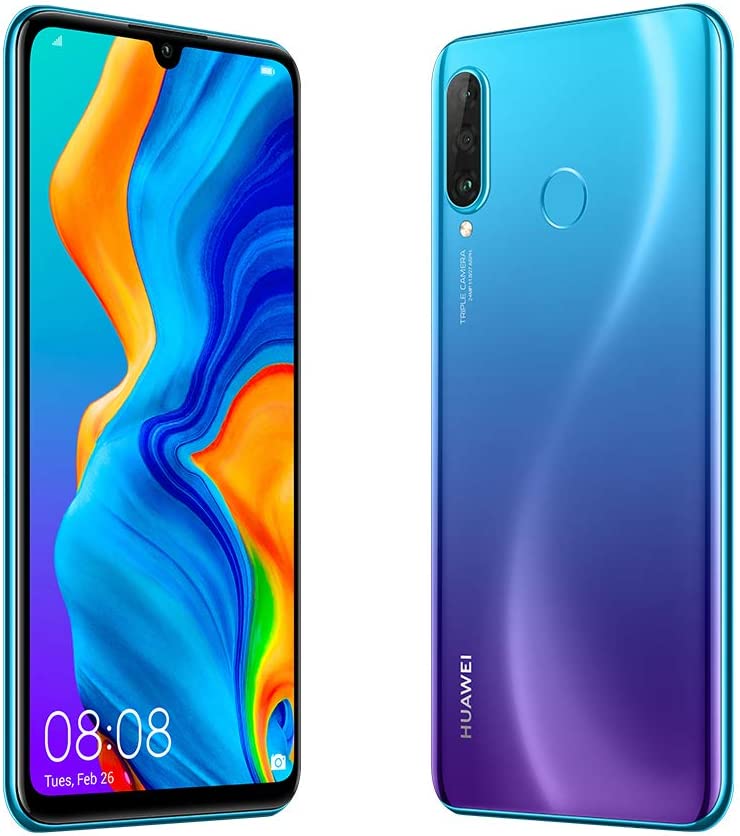 Huawei P30 Lite (128GB, 4GB RAM) 6.2" Display, AI Triple Camera, Dual-SIM Global GSM Factory Unlocked Phone - Peacock Blue