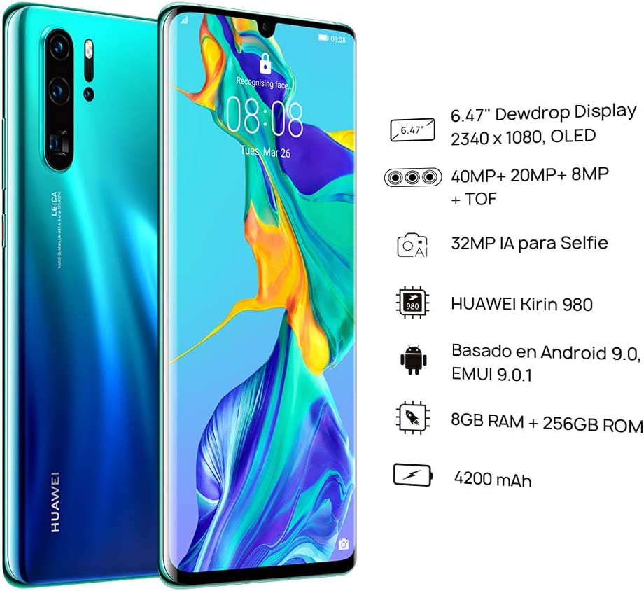 Huawei P30 Pro 128GB+8GB RAM (VOG-L29) 40MP LTE Factory Unlocked GSM Smartphone (International Version, No Warranty in the US) (Aurora)