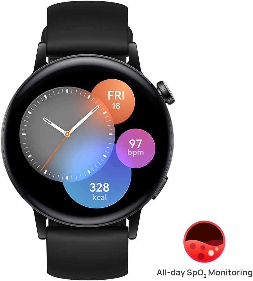 HUAWEI Watch GT 3 42 mm Smartwatch, Durable Battery Life, All-Day SpO2 Monitoring, Personal AI Running Coach, Accurate Heart Rate Monitoring, 100+ Workout Modes, Bluetooth Calling, Black