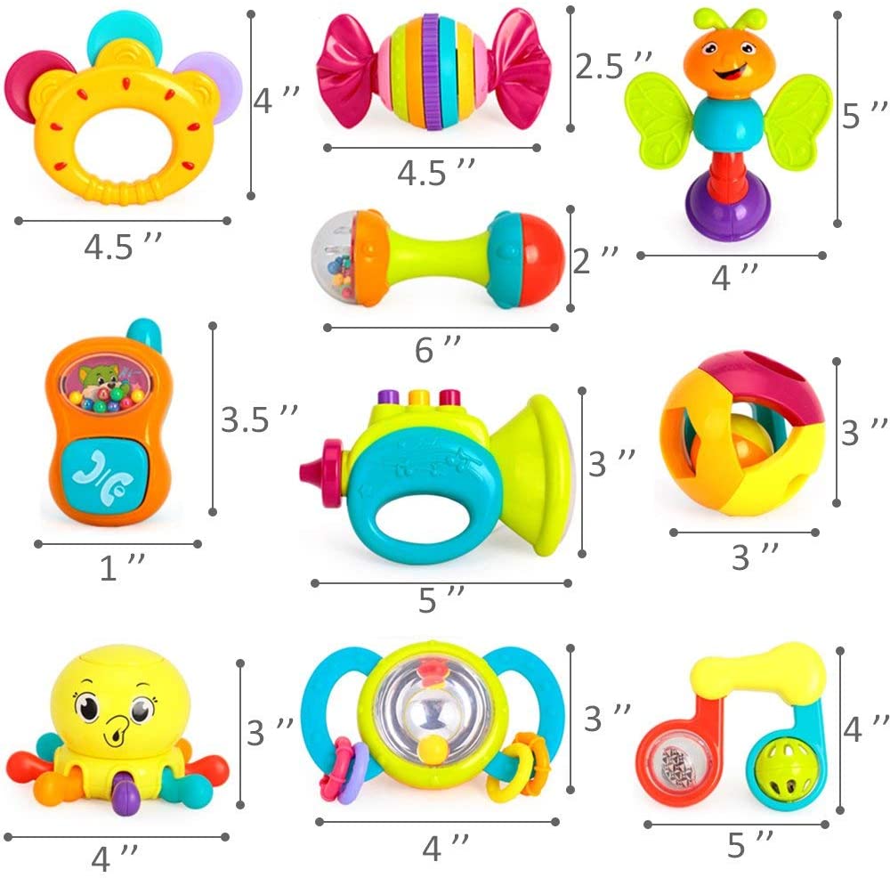iPlay, iLearn 10pcs Baby Rattles Toys Set, Infant Grab N Shake Rattle, Sensory Teether, Early Development Learning Music Toy, Newborn Birthday Gifts for 0 1 2 3 4 5 6 7 8 9 10 12 Month Babies Boy Girl