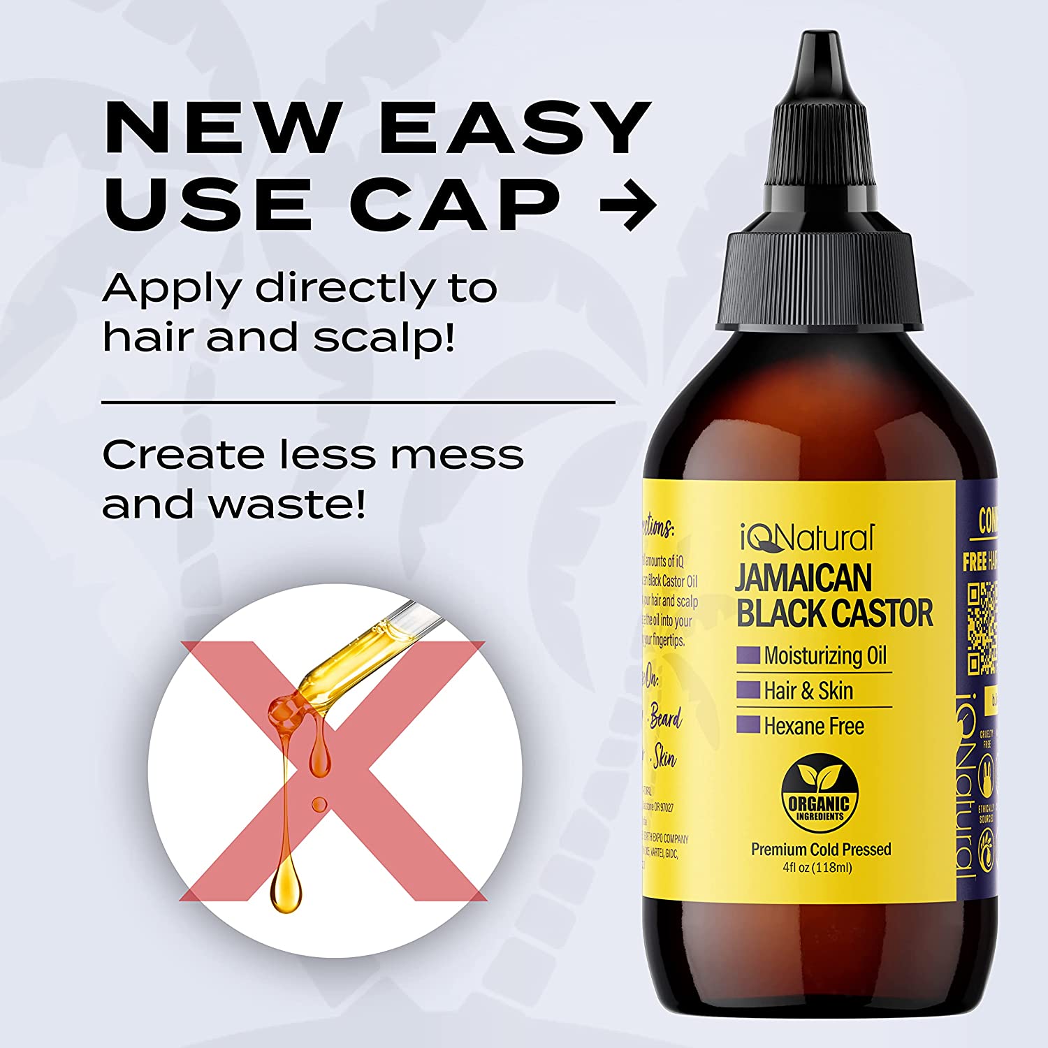 IQ Natural Jamaican Black Castor Oil for Hair Growth and Skin Conditioning, 100% Pure Cold Pressed, Scalp, Nail and Hair Oil - (Unscented) (4oz)