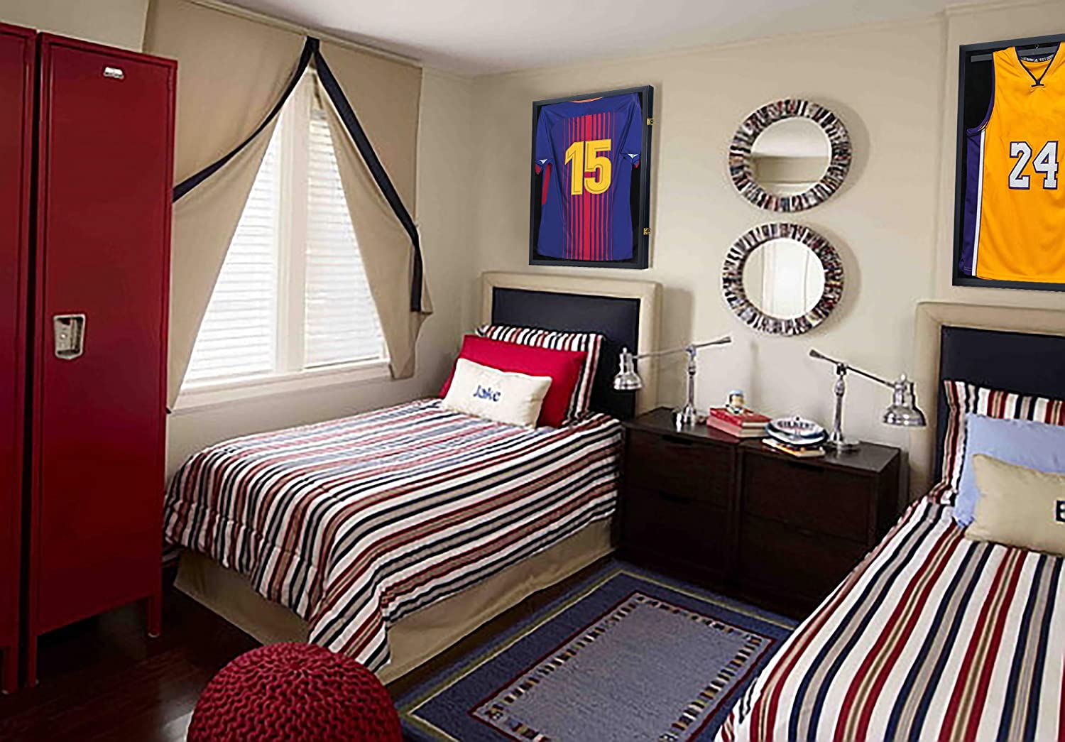 Jersey Display Frame Case, Large Lockable Shadow Box Sports Jersey Frame with 98% UV Protection Acrylic and 2 Hanger for Baseball Basketball Football Soccer Hockey Shirt,Uniform, Graduates Black