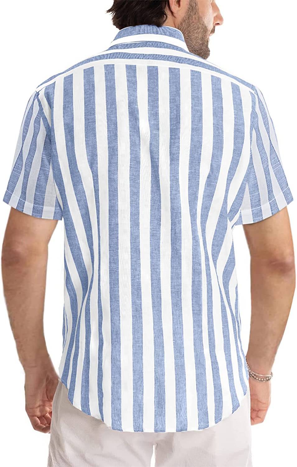 JMIERR Men's Casual Short Sleeve Button-Up Striped Dress Shirts Cotton Shirt