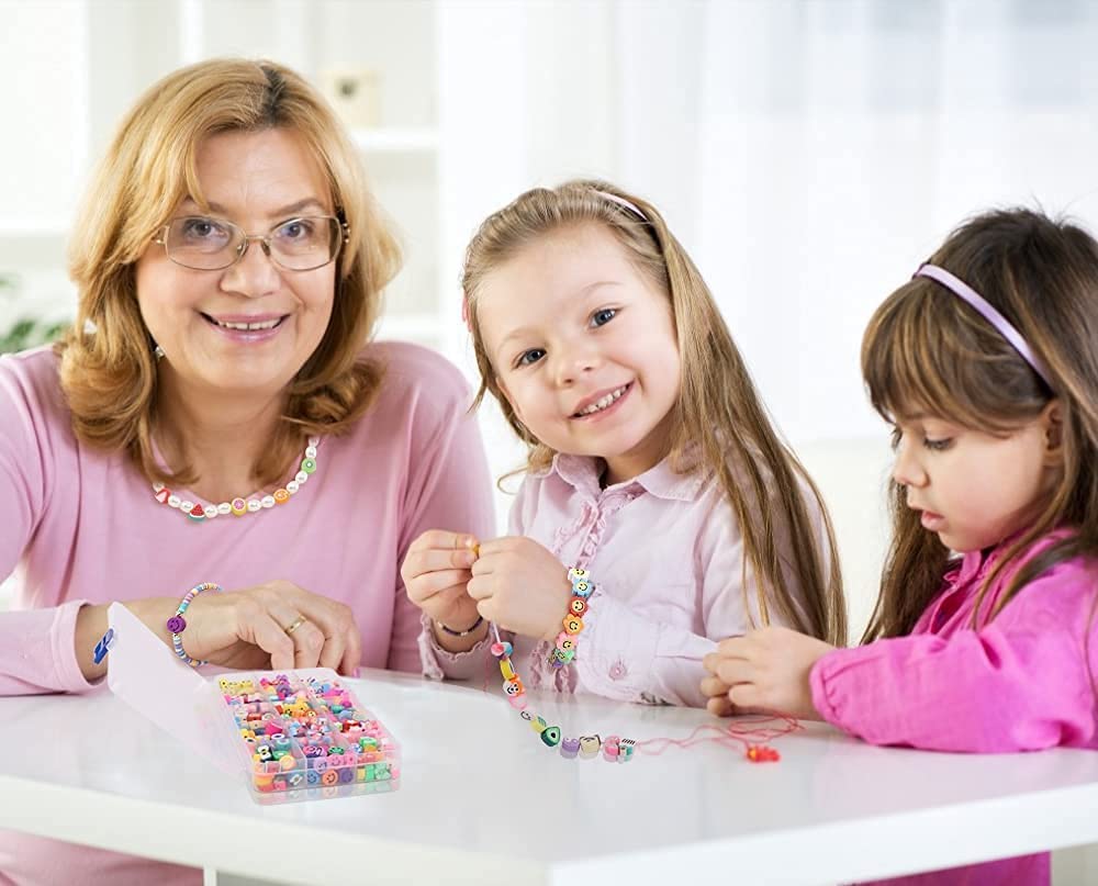 JOICEE 300PCS Fruit Smiley Handmade Polymer Clay Beads 15 Styles Flower Letter Beads Soft Beads for Women Girls Jewelry Making DIY Bracelet Necklace Earring Accessories with 4m Crystal Elastic String.