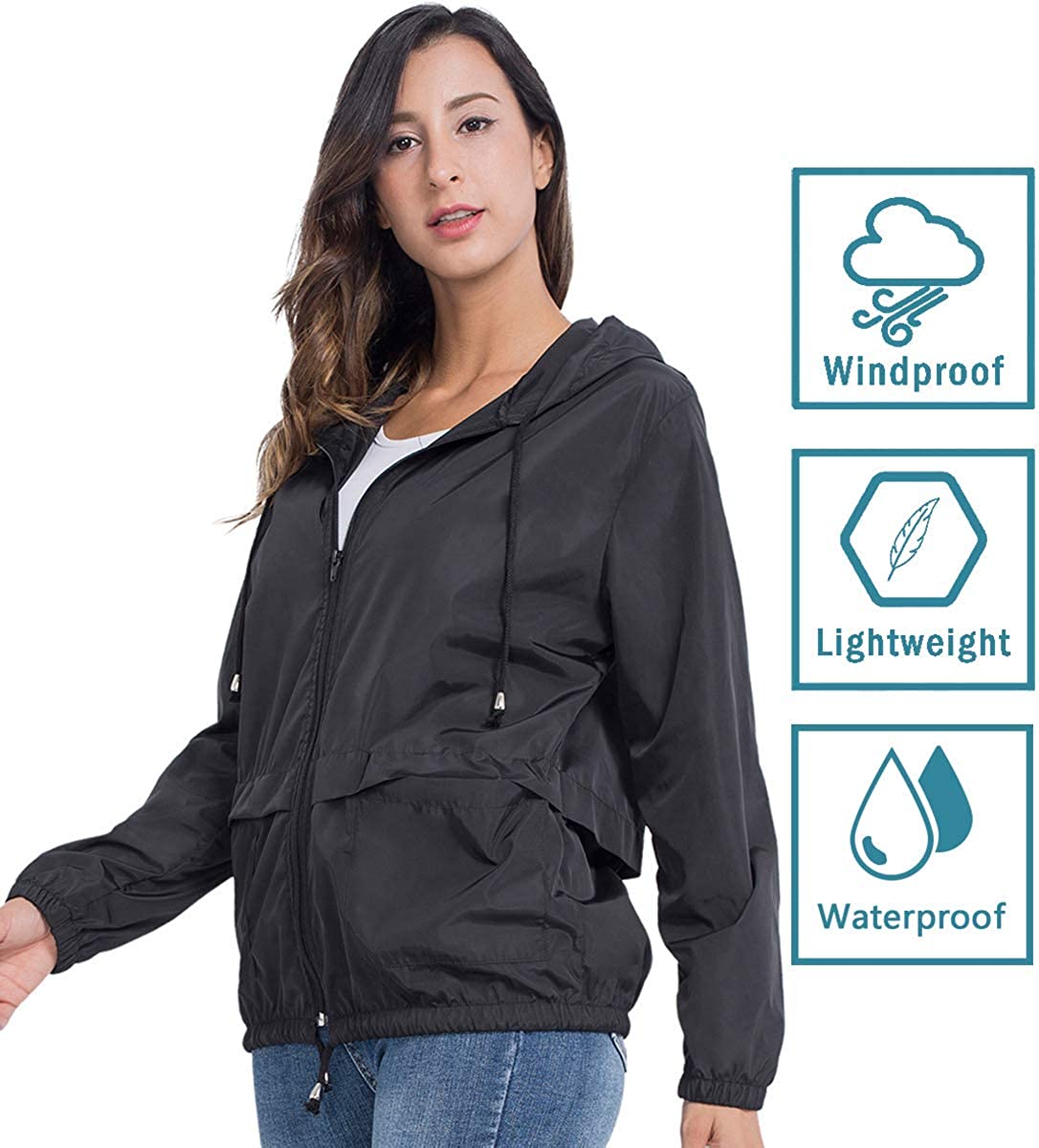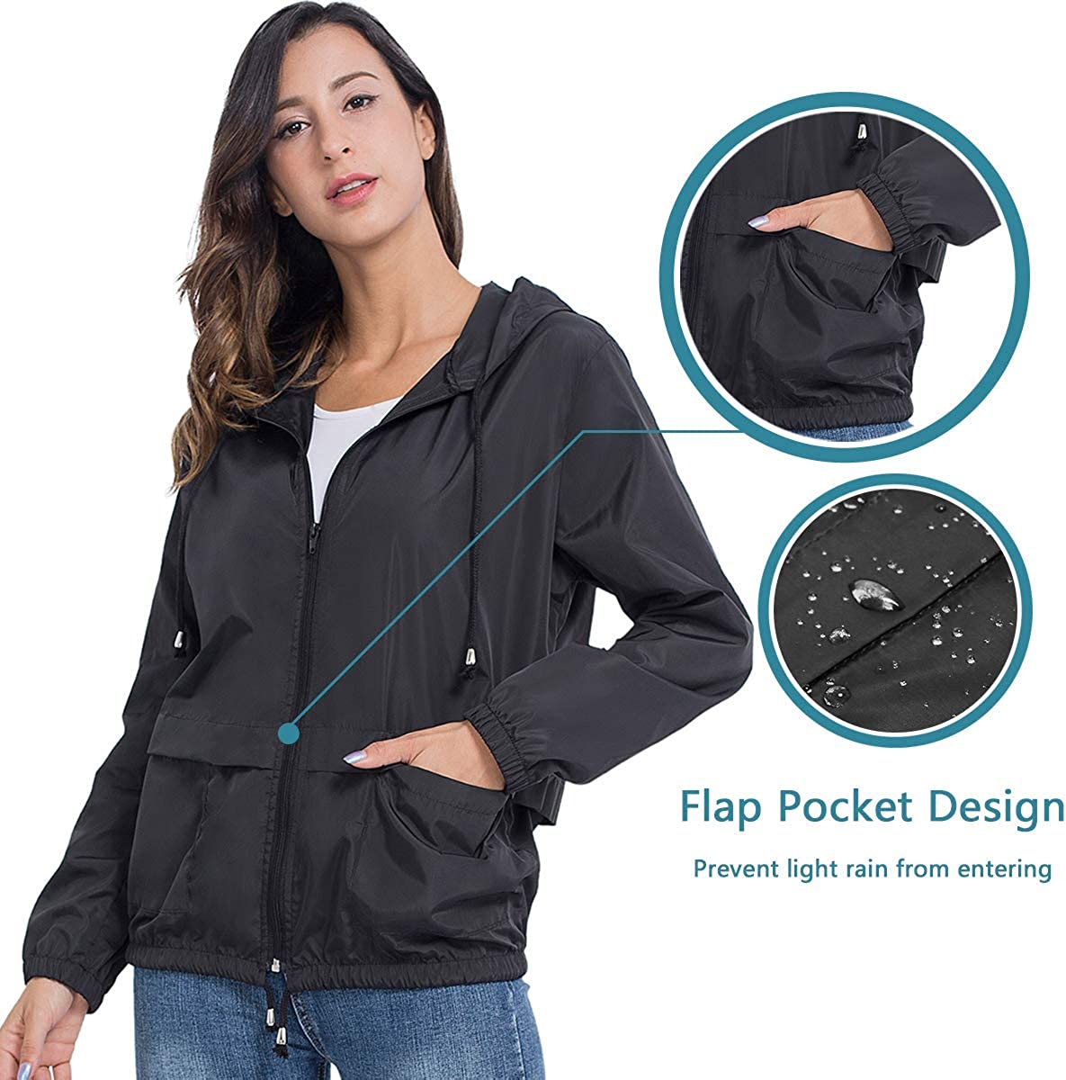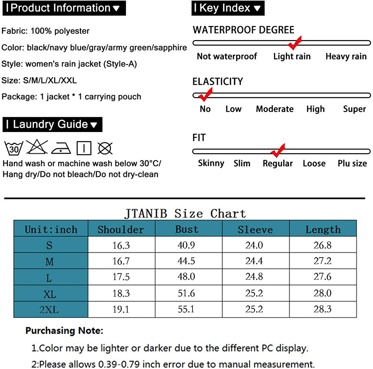 JTANIB Women's Raincoat Waterproof Windbreaker Lightweight Hooded Outdoor Packable Fashionable Color Block Jacket