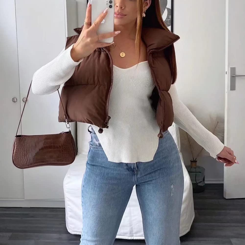 KEOMUD Women's Winter Crop Vest Lightweight Sleeveless Warm Outerwear Puffer Vest Padded Gilet