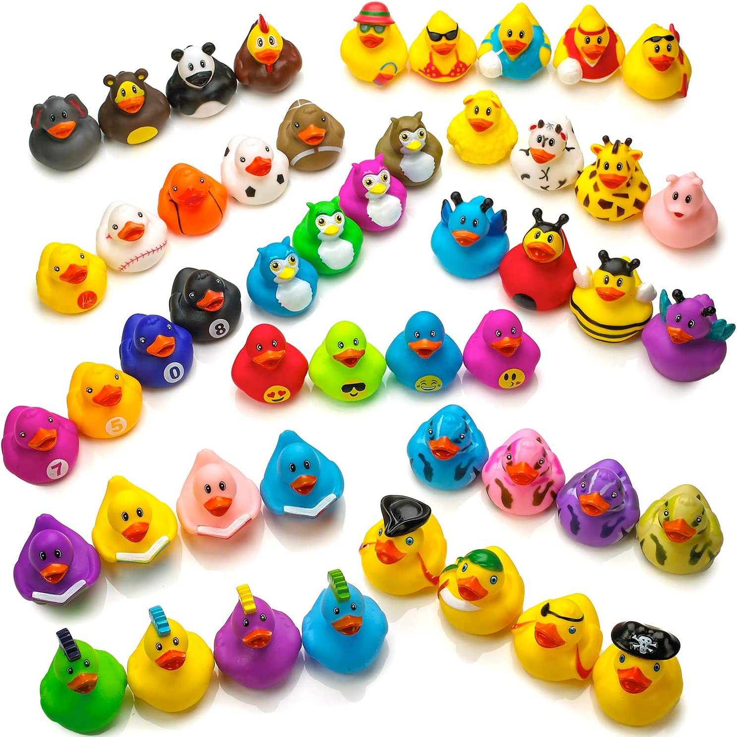 Kicko Assorted Rubber Ducks - 50 Pack - 2 Inches - for Kids, Sensory Play, Stress Relief, Novelty, Stocking Stuffers, Classroom Prizes, Decorations, Supplies, Holidays, Pinata Filler, and Rewards