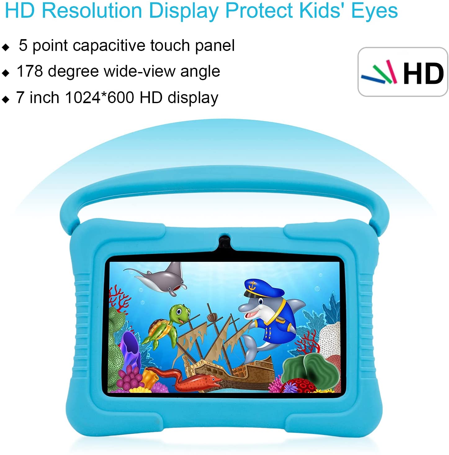 Kids Tablet, Veidoo 7 inch Android Tablet PC, 1GB RAM 16GB ROM, Safety Eye Protection Screen, WiFi, Bluetooth, Dual Camera, Educational, Games, Parental Control APP, Tablet with Silicone Case (Blue)