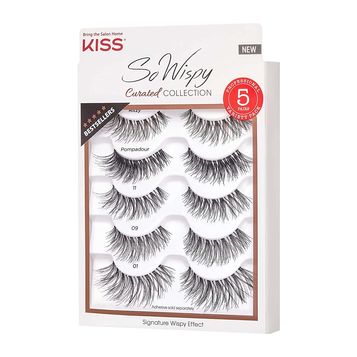 KISS So Wispy Curated Collection of Bestselling False Eyelash Styles Multipack, Volume & Curl, Lash Extensions Look, Signature Wispy Effect, Cruelty Free, Reusable, Contact Lens Friendly, 5-Pair