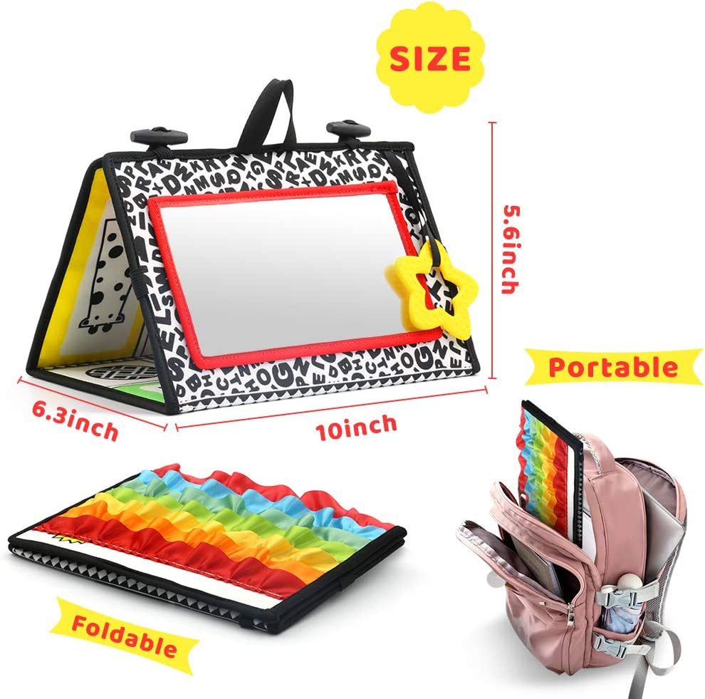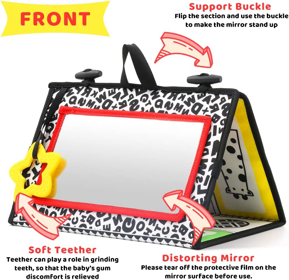 KUANGO Tummy Time Mirror Toys for Babies, High Contrast Activity Montessori Newborn Toys, Black and White Baby Toys 0 3 6 12 Sensory Infant Toys 0-3 Months
