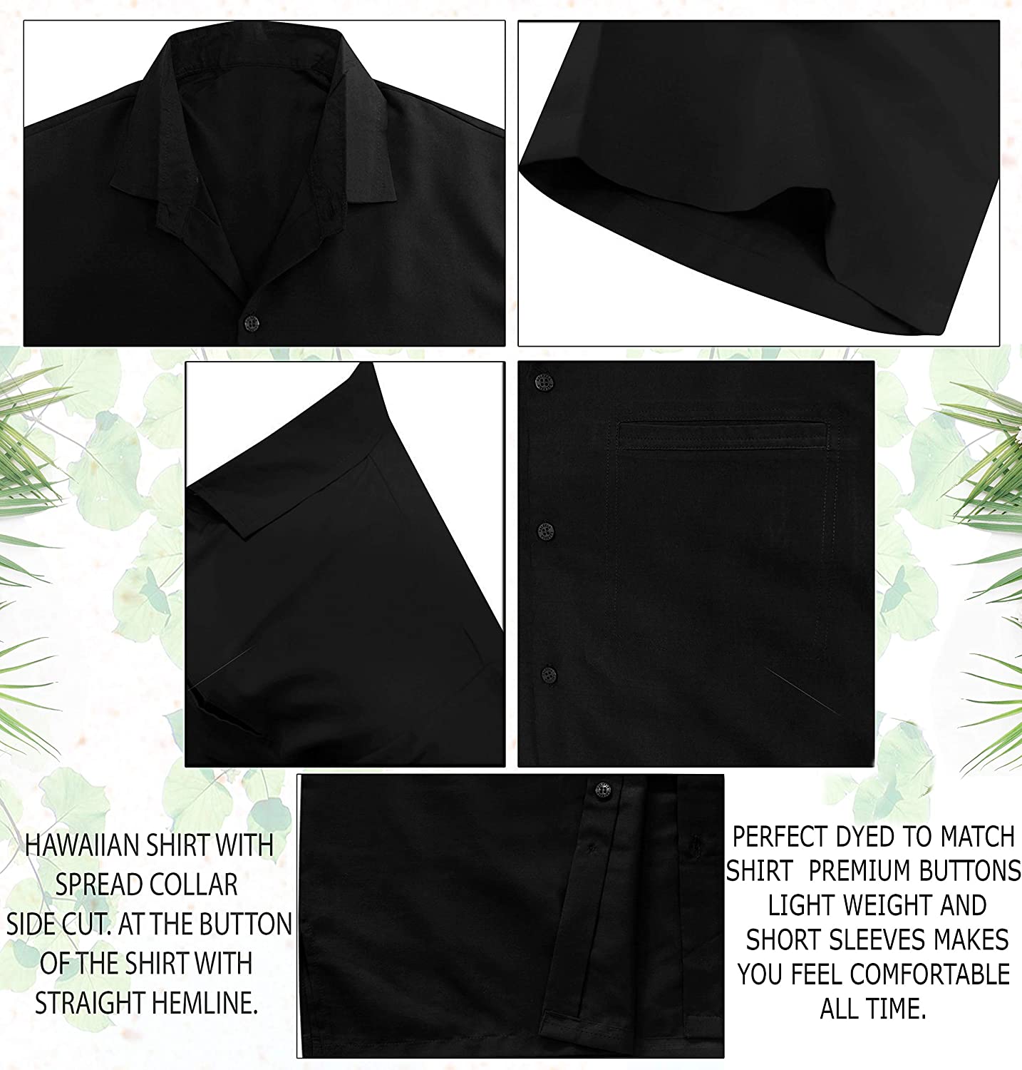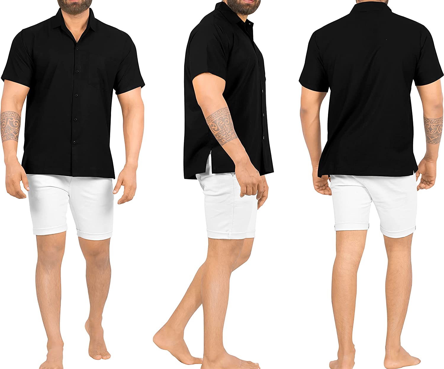 LA LEELA Men's Solid Button-Down Hawaiian Casual Shirts