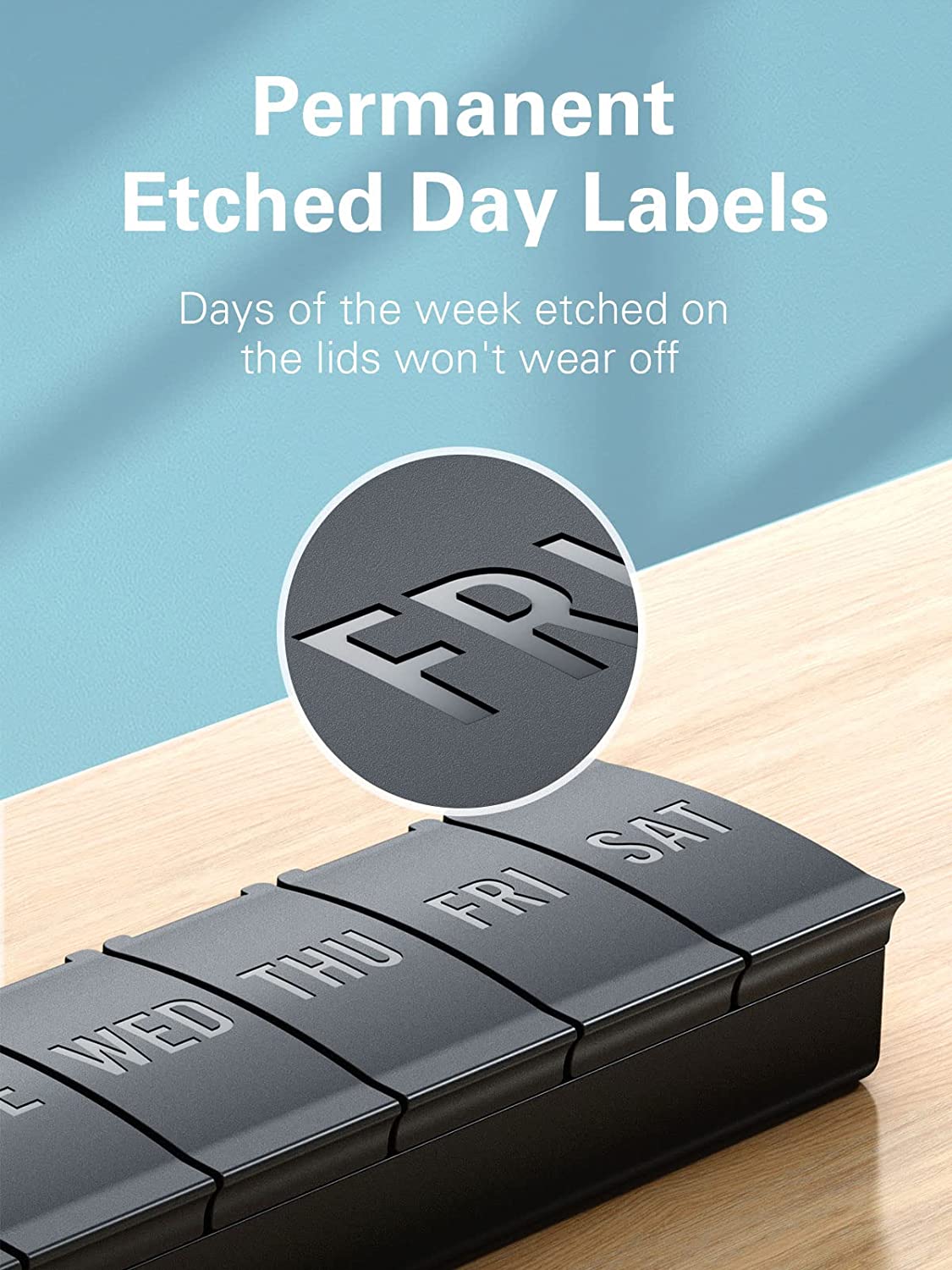 Large Pill Organizer Weekly, Barhon Daily Vitamin Case Box Large Capacity Compartments, 7 Day Pill Containers for Medicine Supplements Fish Oil