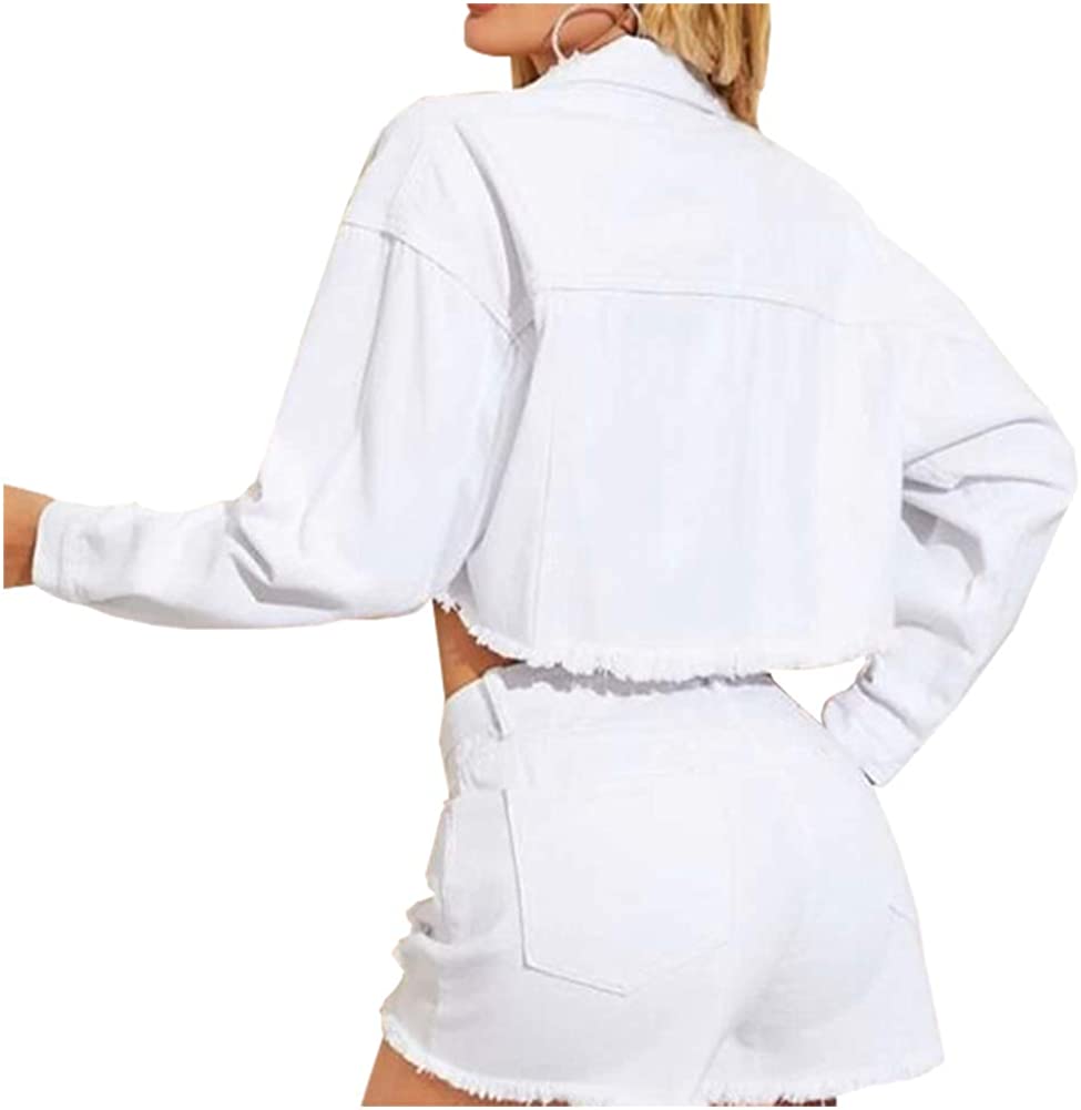 LifeShe Women Cropped Ripped Distressed Denim Jean Jacket Coat Fringe with Frayed Hem