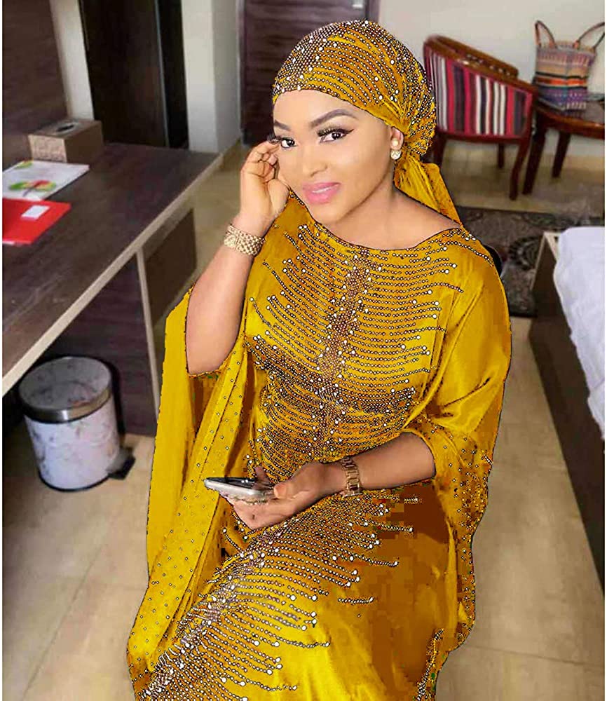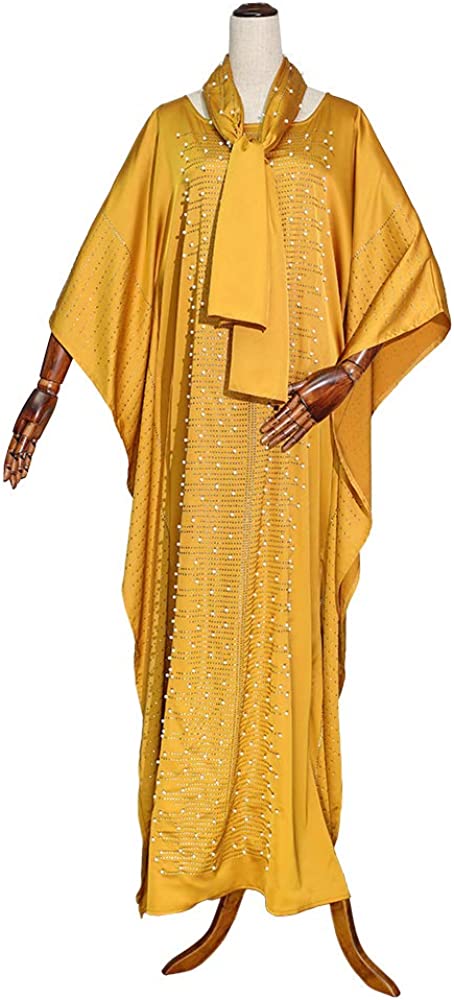Long African Dresses for Women Fashion Beading Rhinestone Kaftan Maxi Dress