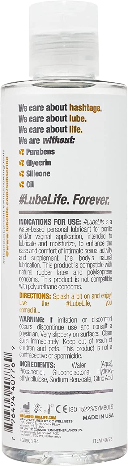#LubeLife Water-Based Personal Lubricant, Lube for Men, Women and Couples, Non-Staining, 8 Fl Oz