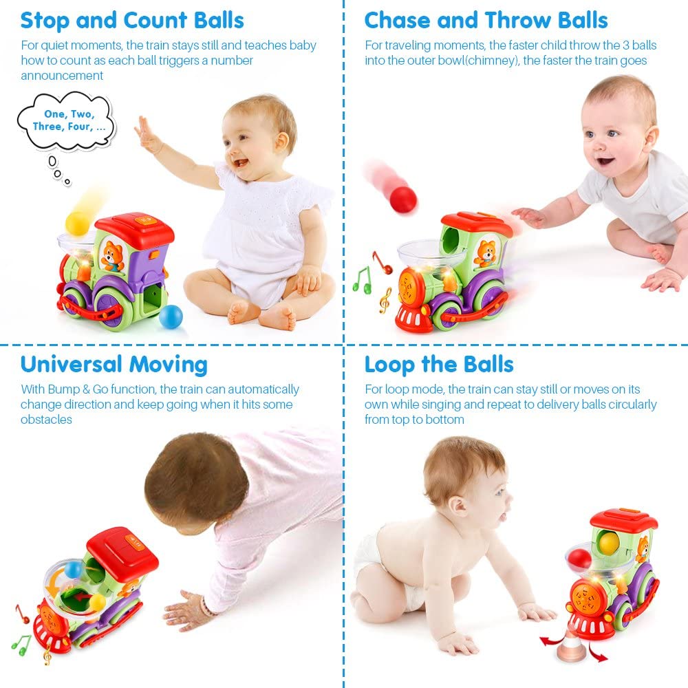 LUKAT Toddler Educational Drop and Go Toy Train with 3 Popper Ball, Music and Light Baby Toys for Preschool Learning, Developmental Toys for 1 2 3 Year Olds