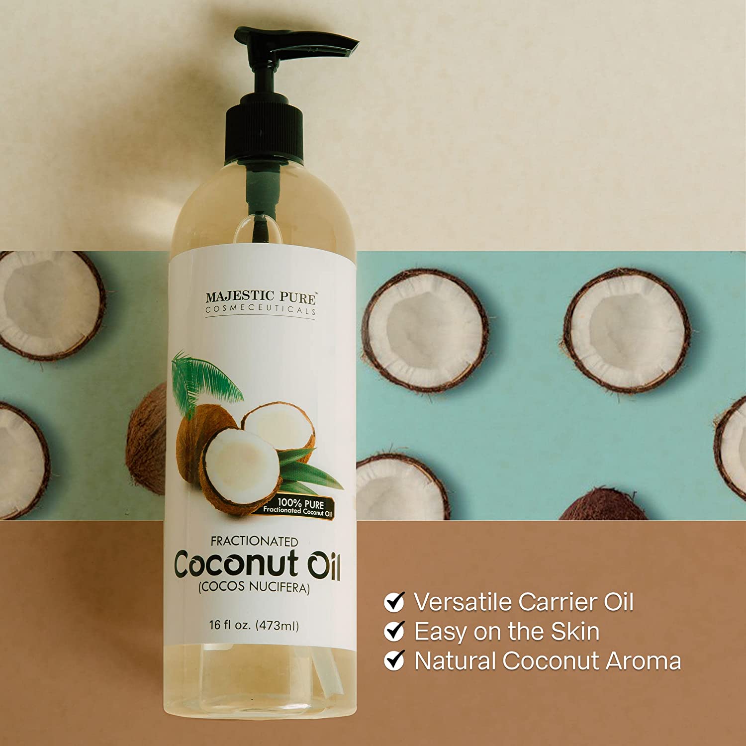 MAJESTIC PURE Fractionated Coconut Oil - Relaxing Massage Oil, Liquid Carrier Oil for Diluting Essential Oils - Skin, Lip, Body & Hair Oil Moisturizer & Softener - 16 fl oz