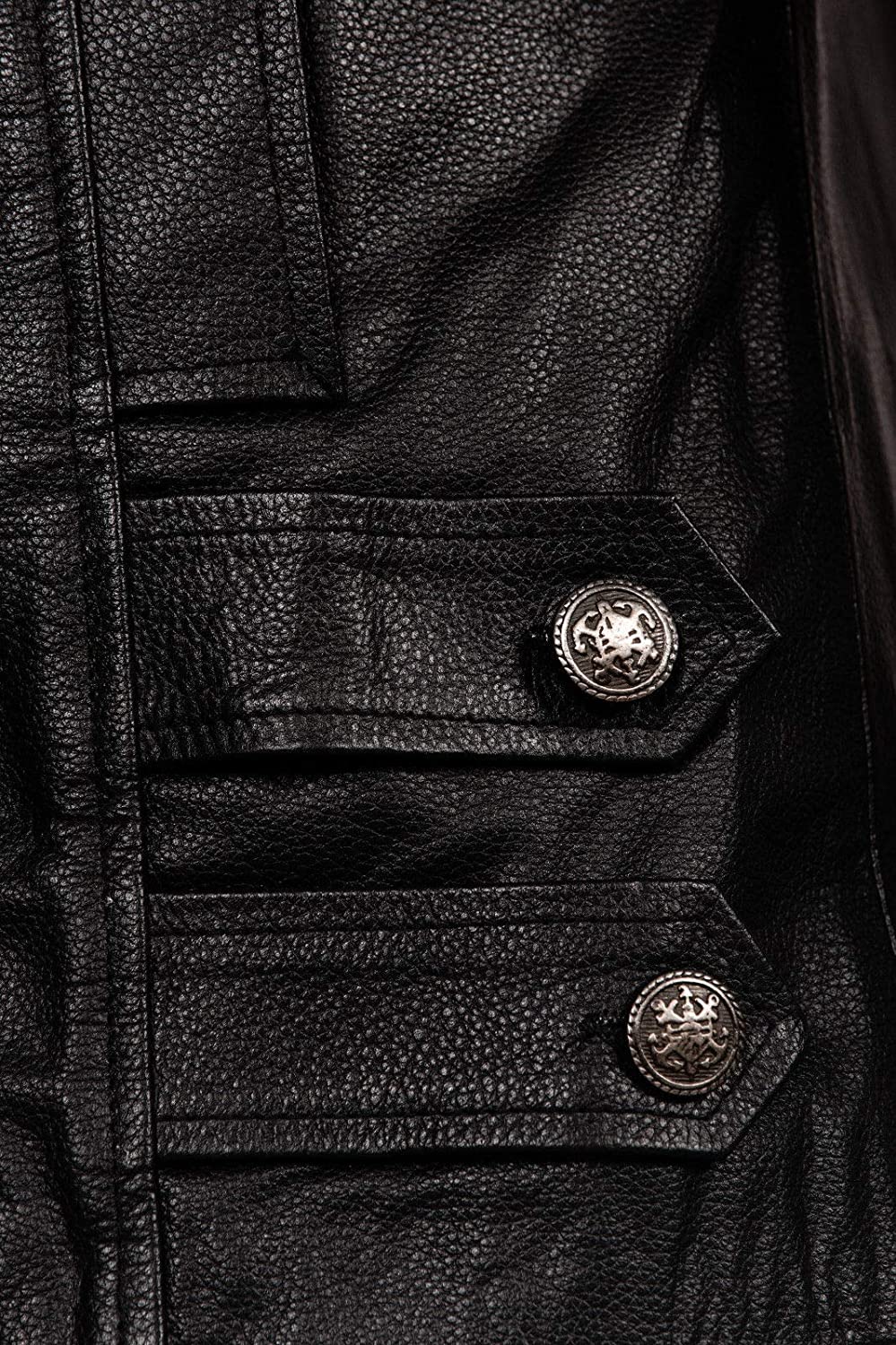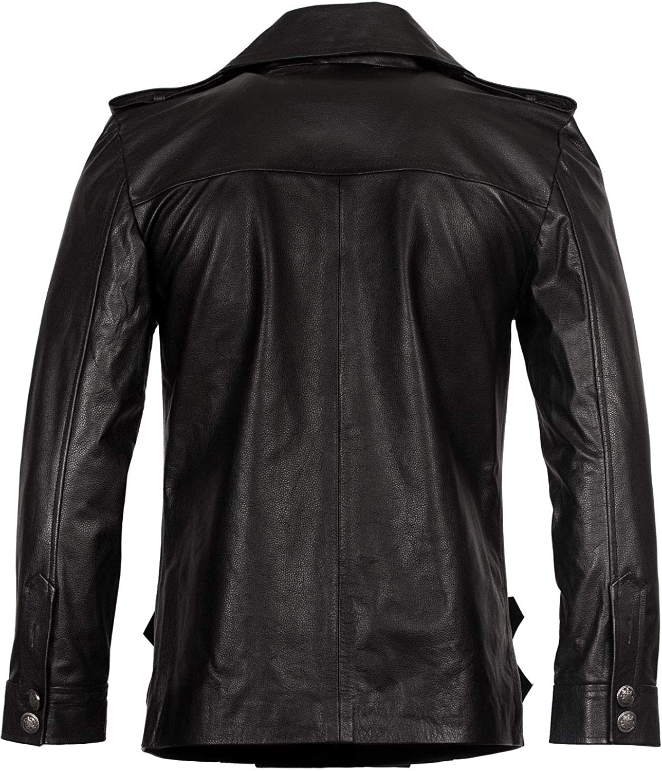 Mens Classic German Navy Military Peacoat Black Cowhide Leather Jacket