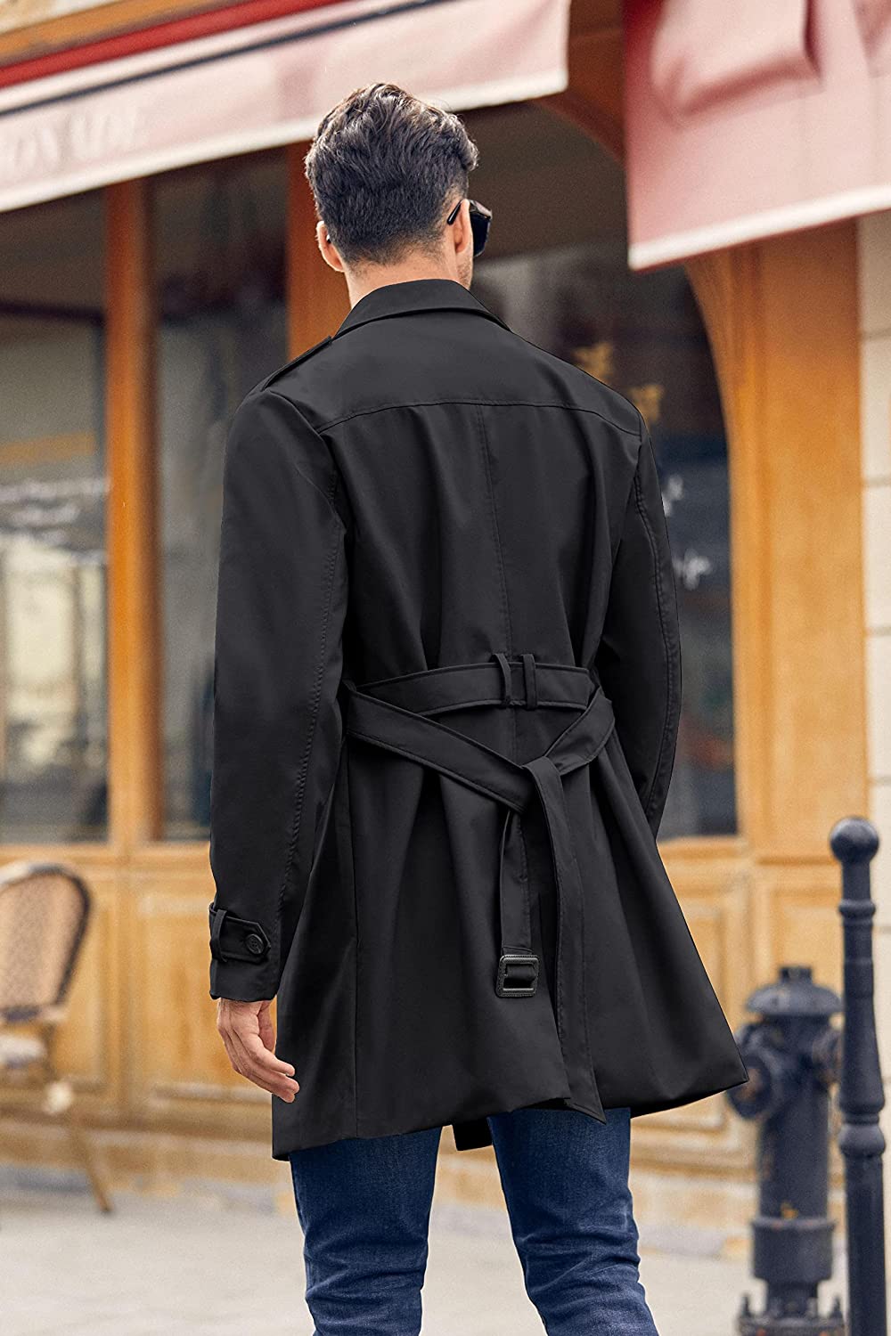 Men's Trench Coat Slim fit Double Breasted Belted Windbreaker Lapel Long Jacket Casual Windproof Overcoat