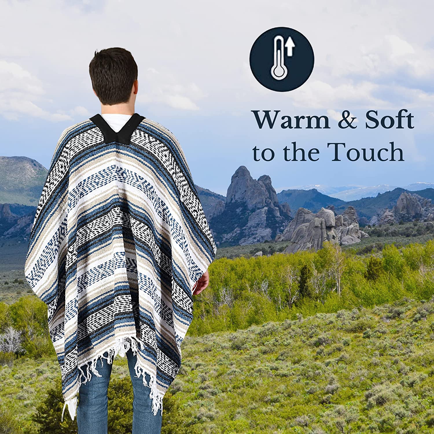 Mexican Baja Poncho 100% Warm And Comfortable Sarapes Mexicanos Winter Coat