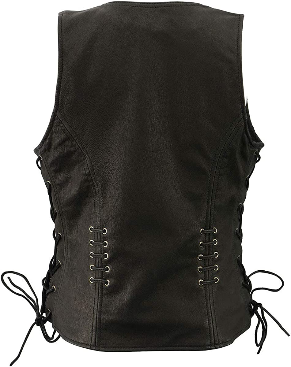 Milwaukee Leather MLL4575 Women's Black Leather Vest with Side Laces