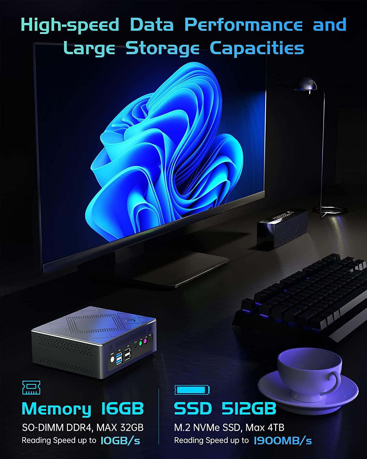 Mini PC Windows 11 Pro, Intel i5-8279U (up to 4.1Ghz) 16GB DDR4 512G M.2 SSD, 4 Cores 8 Thread Small Desktop Computer 4K HDMI VGA Type-C USB 3.0 WiFi 5 BT 4.2, Support Auto Power On