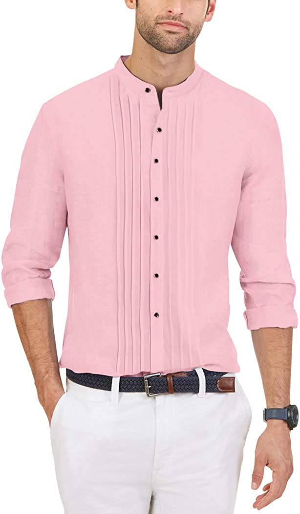 Miqieer Casual Men's Slim Fit Long Sleeve Shirt Henley Neck Blouse Laydown Collar Tops