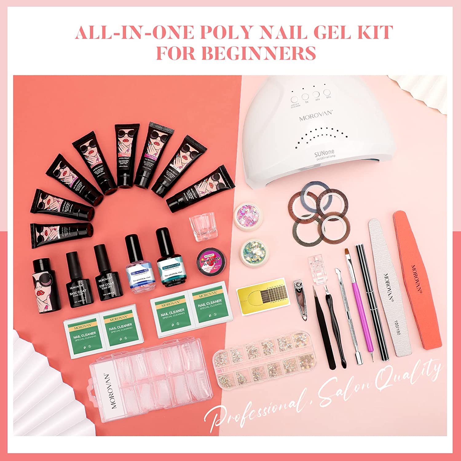 Morovan Poly Gel Nail Kit for Nails with 48W LED Nail Lamp Nail Extension Gel 8 Pcs 0.5oz with Other Basic Poly Gel Nail Art Tools Poly Nail Gel Kit Nail Art Supplies