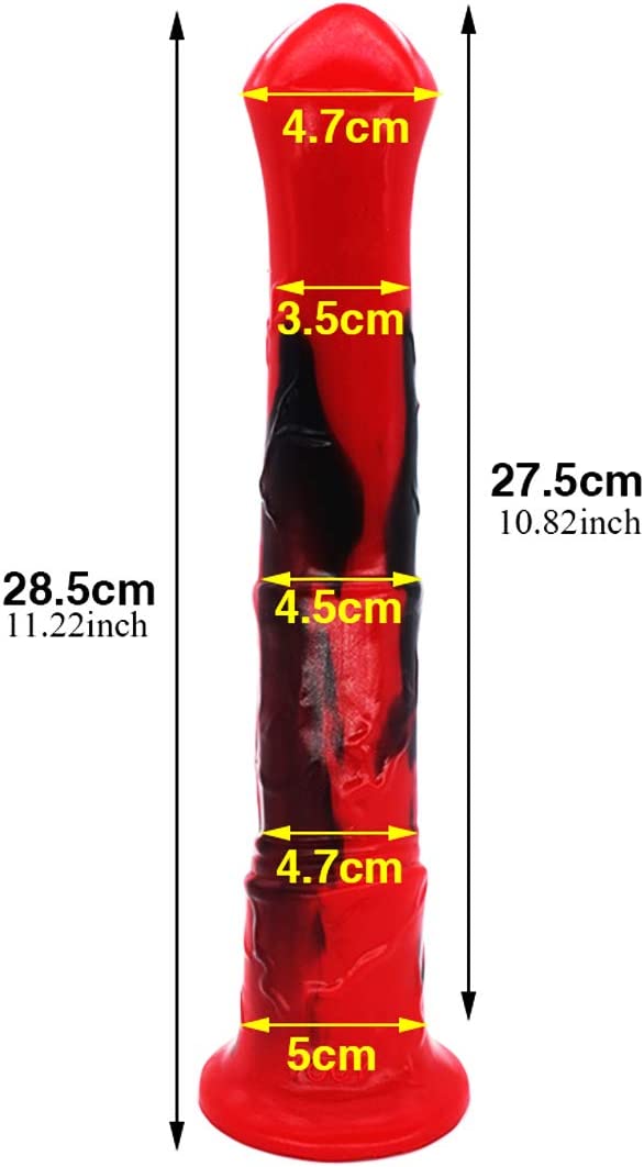 Multi Color Soft Flexible Animal Artificial Horse Dildo Silicone Dildo Toy Adult Sex Toy for Women with Suction (Red+Black)