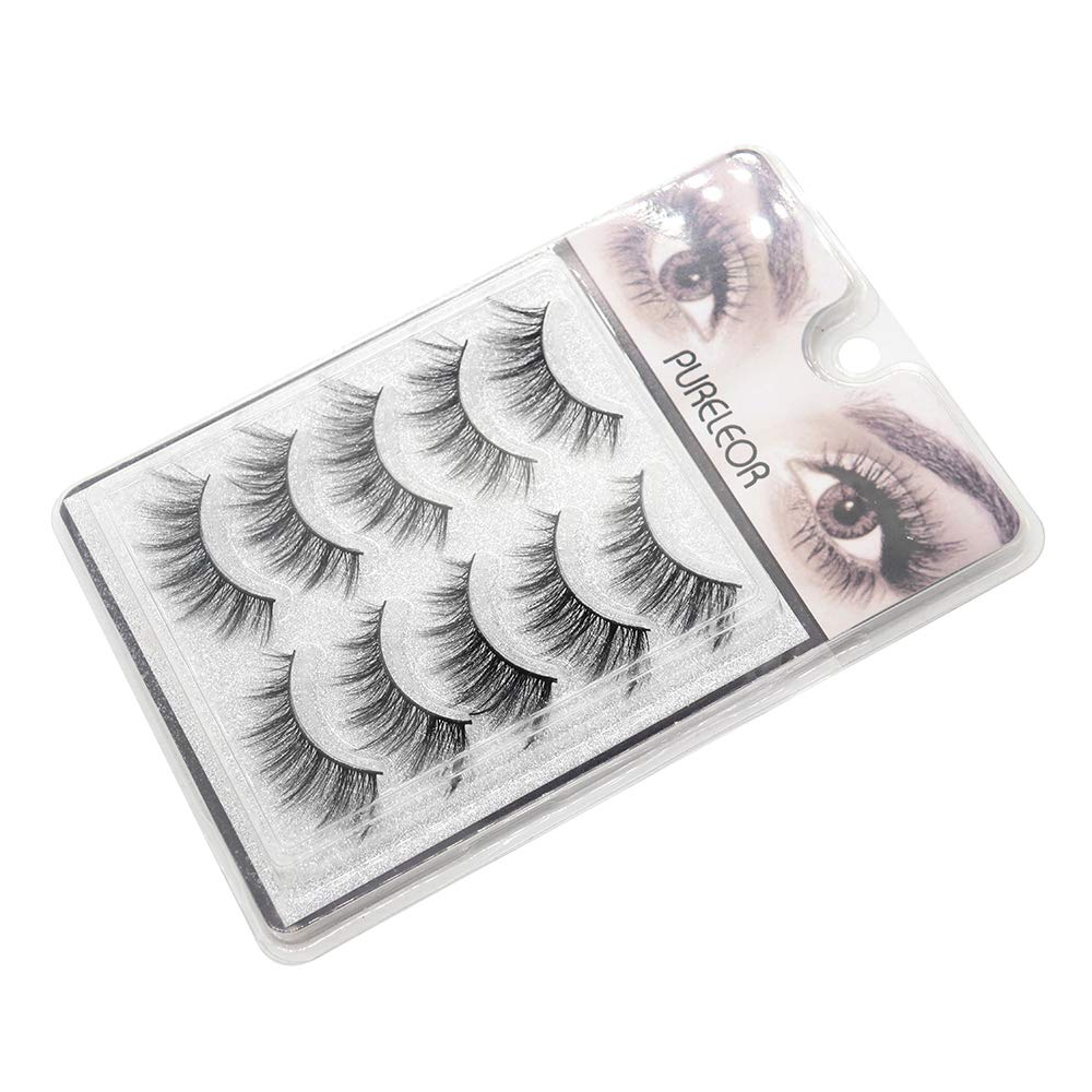 Natural Look Eyelashes 3D Mink Cat Eye Lash Wispies 15mm Fluffy False Lashes 5 Pairs Soft Reusable Eyelashes Lightweight , No Glue