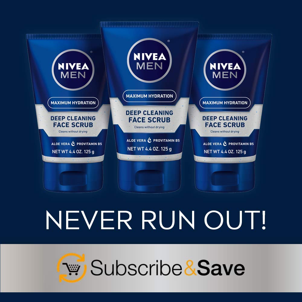 Take care of your skin with NIVEA MEN Maximum Hydration Deep Cleaning Face Scrub With Aloe Vera. This NIVEA face scrub cleanser is specially formulated for men to deeply cleanse skin without leaving it feeling tight or dry. This daily facial scrub for men is enriched with Aloe Vera, Provitamin B5 and fine scrub particles that cleans skin without drying it out. The foaming face scrub for men deeply cleanses skin to unclog pores and helps clear away impurities and excess dirt and oils, while fine particles work to refine and smooth the complexion by removing dead skin. This morning face scrub leaves skin feeling thoroughly clean, smooth and healthy. A daily face scrub is a key part of a skin care routine and pairs well with NIVEA MEN Hydrating Face Moisturizer. To use, lather this men's face scrub, massage over wet face, and rinse off with water.