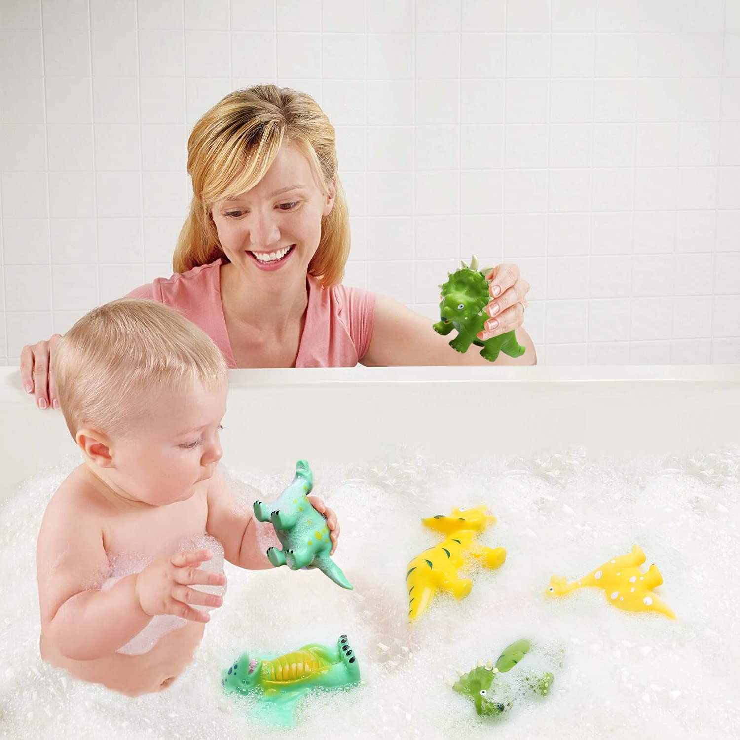 No Hole Baby Dinosaur Bath Toys for Toddler 1-3, 12 PCS Mold Free Kids Bathtub Pool Toys for Infants 6-12 Months